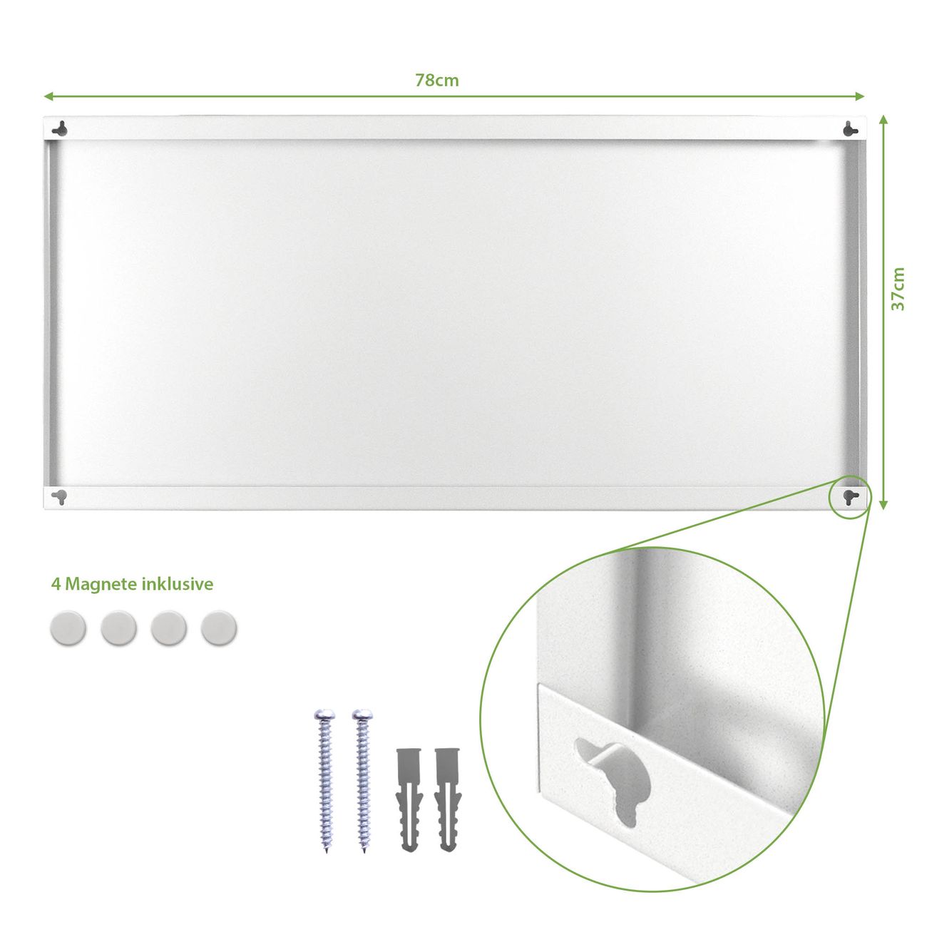 Motiv Muh Nr. 10104 Größe: 78x37x2cm BxHxT Gewicht: ca. 2,10 kg Material: Stahlblech weiß, Premiumfolie mit Schutzlaminat Magnete: für Dekomagnete geeignet beschreibbar: Nein Format: Querformat Zubehör: 4 Magnete, Schrauben und Dübel