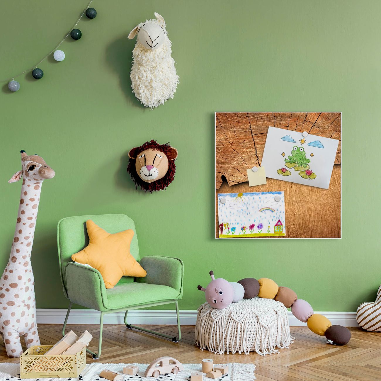 Die banjado Design Magnettafel mit Motiv Motiv Baumscheibe bringt Ordnung in Ihr Zettelchaos. Fotos, Termine, Notizen oder Rezepte lassen Sich hier stilvoll mit Magneten ordnen, Sie behalten alles im Blick. An der Pinnwand halten alle handelsüblichen Magnete. Mit dieser Pinnwand aus Metall haben Sie auch ohne Notizen und Magnete ein schönes Dekoelement. Das Quadratische Format bietet Ihnen ausreichend Platz um alle wichtigen Informationen im Blick zu behalten.