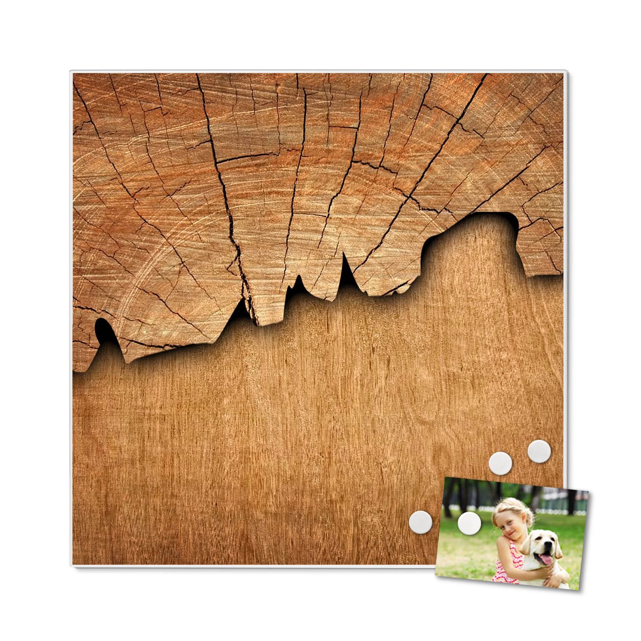Motiv Baumscheibe Nr. 12148 Größe: 50x50x2cm BxHxT Gewicht: ca. 1,5 kg Material: Stahl weiß lackiert, Premiumfolie mit Schutzlaminat Magnete: für Dekomagnete geeignet beschreibbar: Nein Format: Quadratisch Zubehör: 4 Magnete, Schrauben und Dübel