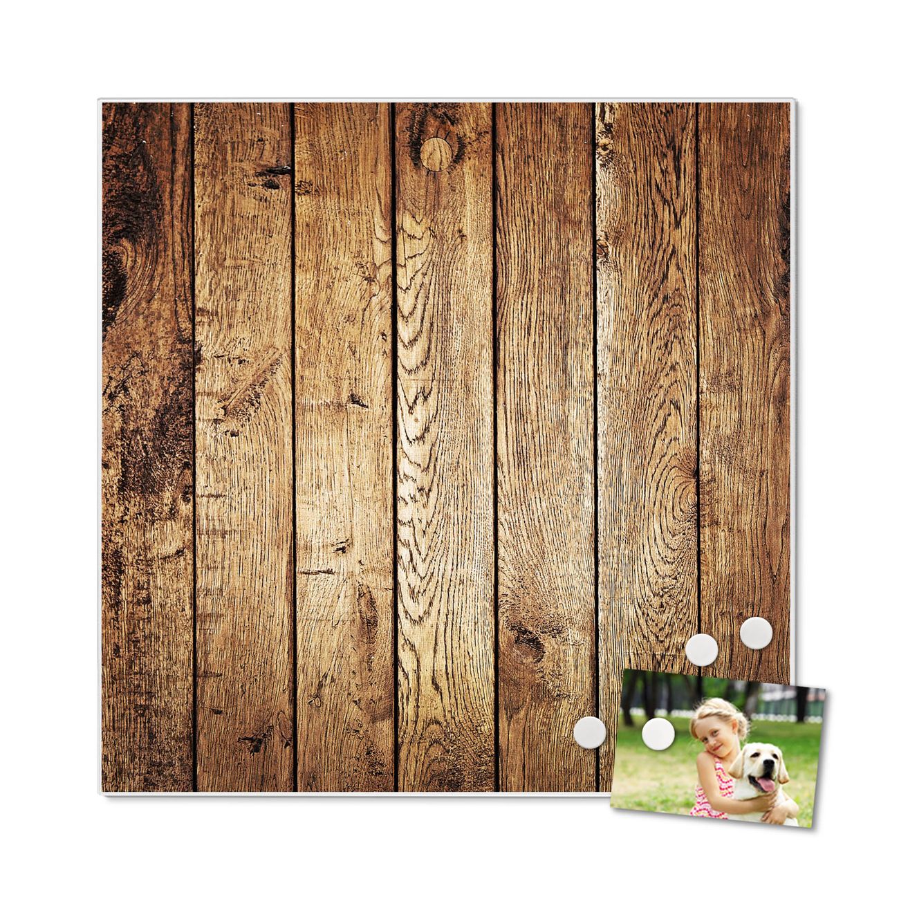 Motiv Geöltes Holz Nr. 12153 Größe: 50x50x2cm BxHxT Gewicht: ca. 1,5 kg Material: Stahl weiß lackiert, Premiumfolie mit Schutzlaminat Magnete: für Dekomagnete geeignet beschreibbar: Nein Format: Quadratisch Zubehör: 4 Magnete, Schrauben und Dübel