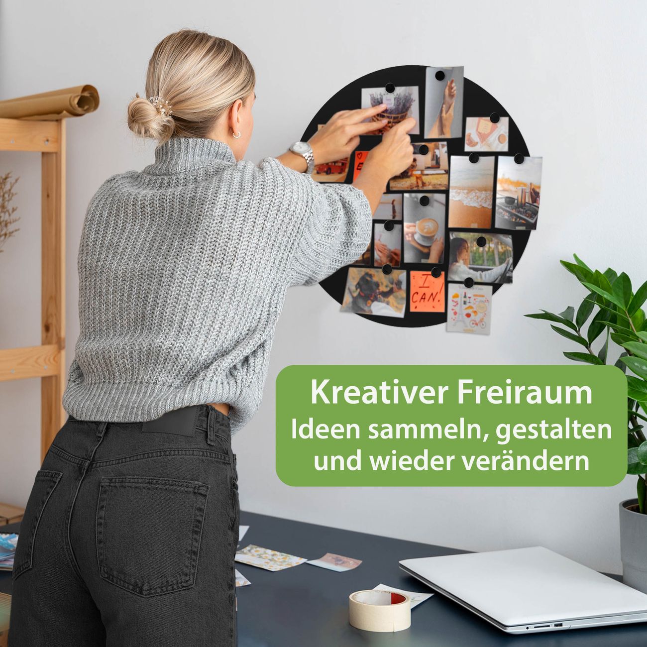 DESIGN:  Das runde Memoboard mit dem Motiv ist ein eleganter Begleiter im Alltag. Mit dieser Pinnwand haben Sie auch ohne Notizen und Magneten ein schönes Dekoelement. Das Format bietet Ihnen ausreichend Platz um alle wichtigen Informationen im Blick zu behalten.