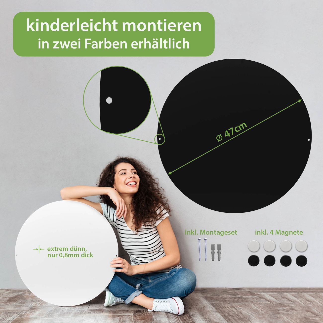 • Zubehör: 4 Magnete, Schrauben und Dübel