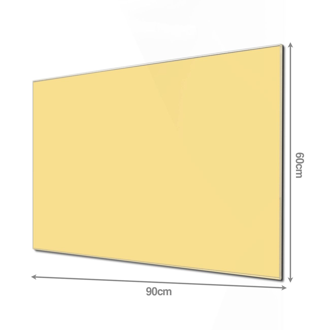 Material: 4mm Sicherheitsglas mit Metallrückwand Eigenschaften: beschreibbar, magnetisch, kratzfest Maße: 90x60x0,6cm, 8,10kg schwer Farbe Nummer 0030 Honig Zubehör: inklusive 4 Neodym-Magnete