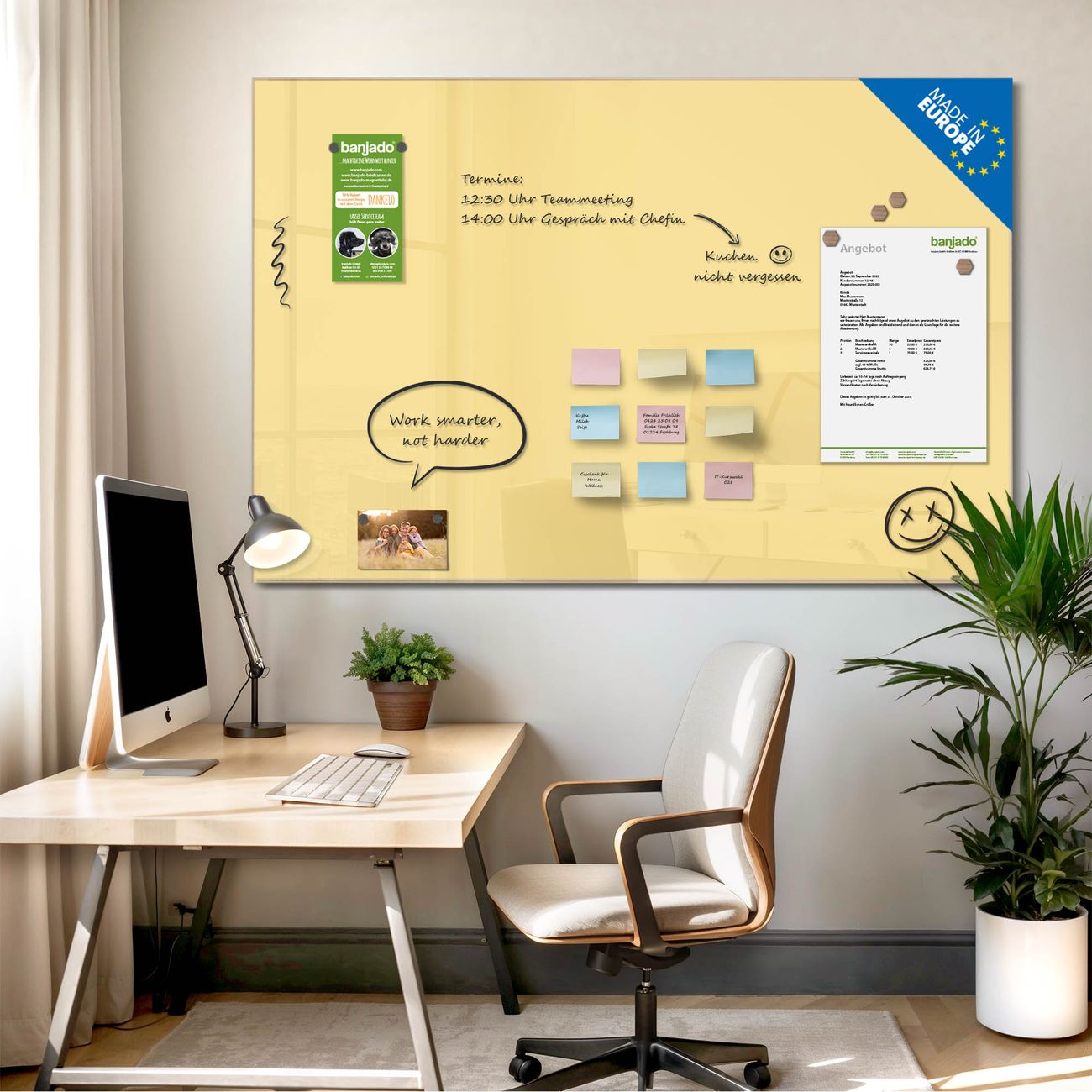 Die banjado Glas Magnettafel mit dem Motiv Farbe Honig verbindet Funktionalität mit Stil. Sie ersetzt das Zettelchaos durch klare Strukturen und bringt dabei eine warme, natürliche Atmosphäre in Ihr Zuhause. Ob im Büro, in der Küche oder im Eingangsbereich - dieses Design-Board zieht Blicke an und sorgt für Ordnung mit Charakter.