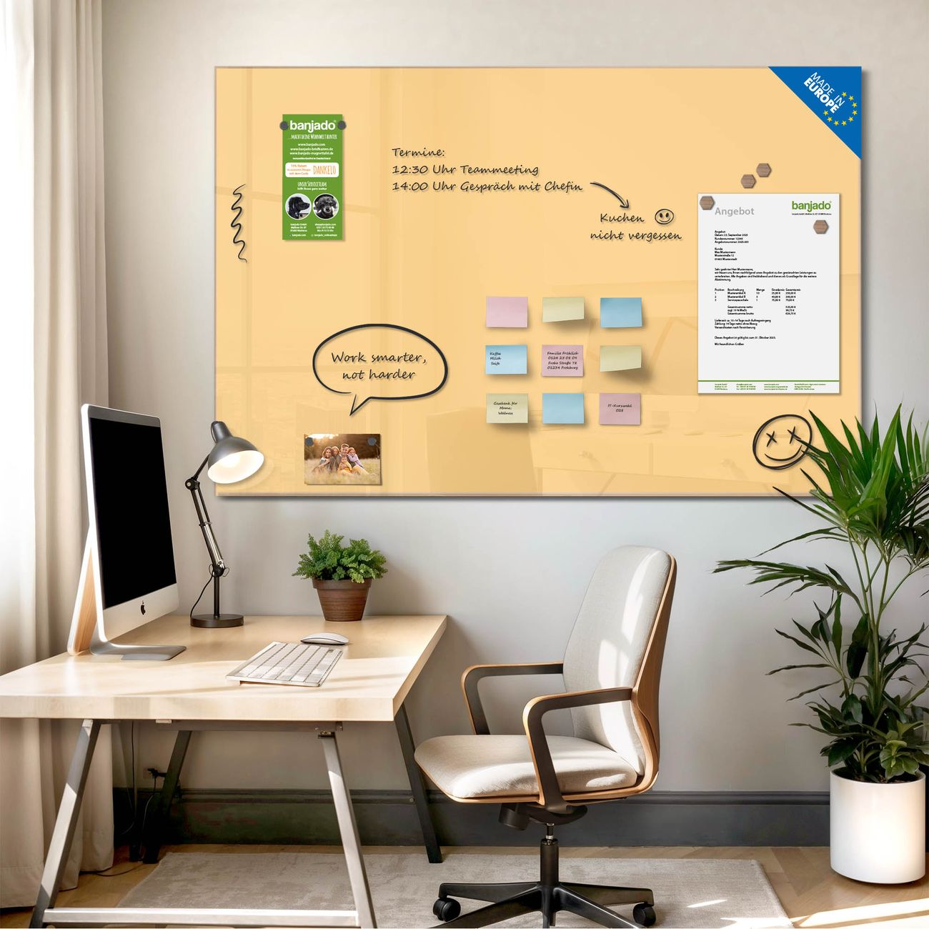 Bitte beachten Sie, dass ausschliessliche spezielle Magnete an der Glastafel haften. Wir empfehlen banjado Neodym Magnete, diese sind durch uns auf Wirksamkeit geprüft.