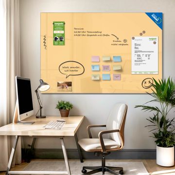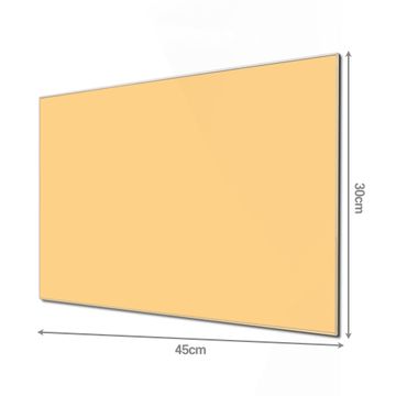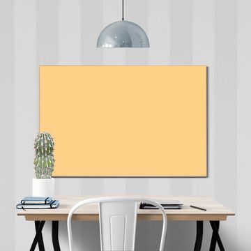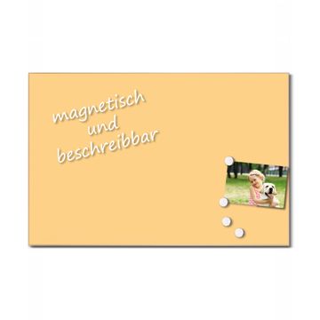 Material: 4mm Sicherheitsglas mit Metallrückwand Eigenschaften: beschreibbar, magnetisch, kratzfest Maße: 45x30x0,6cm, 2,03kg schwer Farbe Nummer 0031 Mandarine Zubehör: inklusive 4 Neodym-Magnete