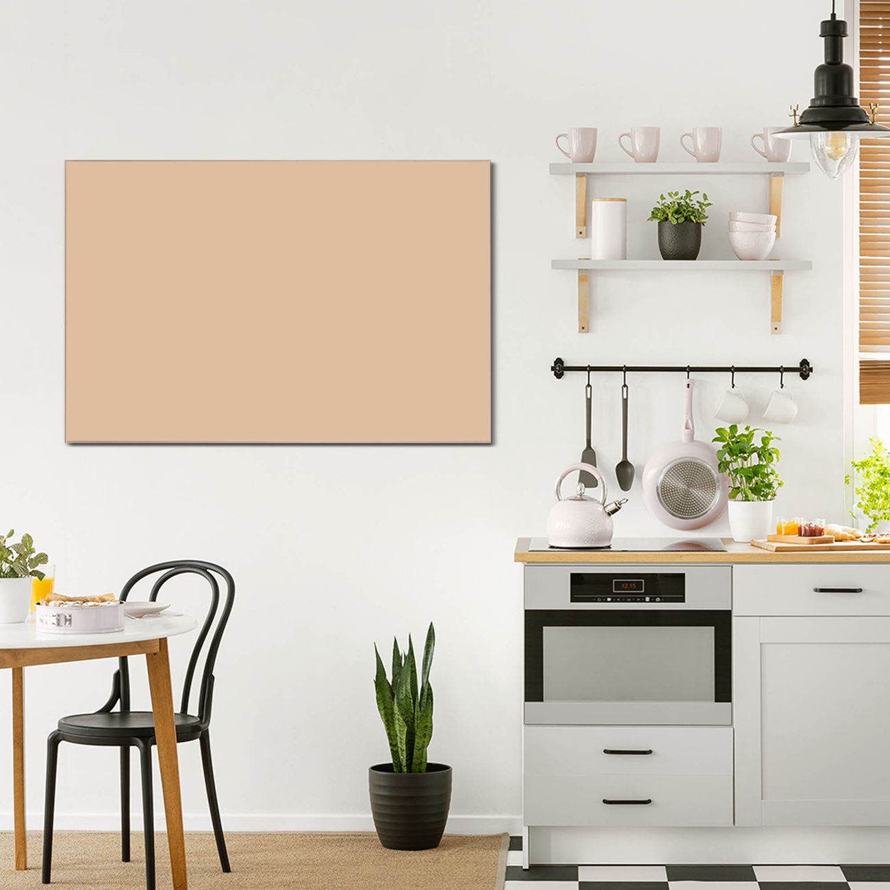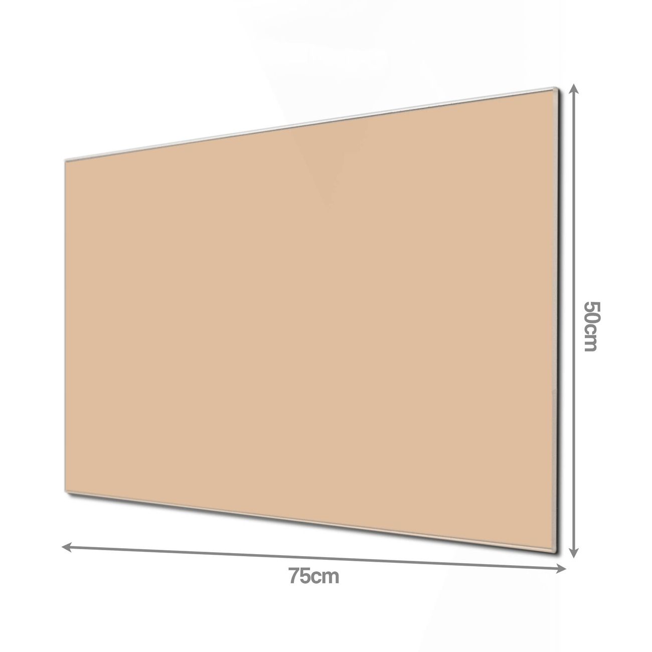 Material: 4mm Sicherheitsglas mit Metallrückwand Eigenschaften: beschreibbar, magnetisch, kratzfest Maße: 75x50x0,6cm, 5,63kg schwer Farbe Nummer 0032 Sandstein Zubehör: inklusive 4 Neodym-Magnete