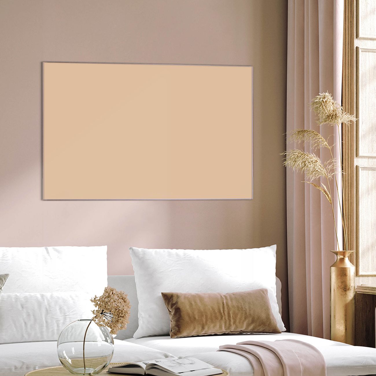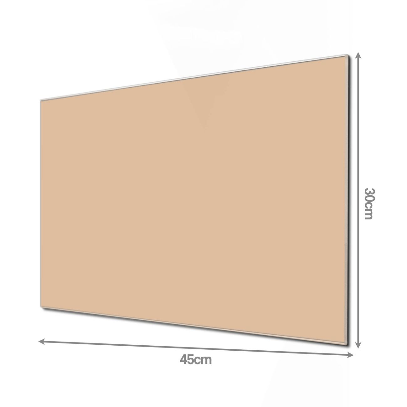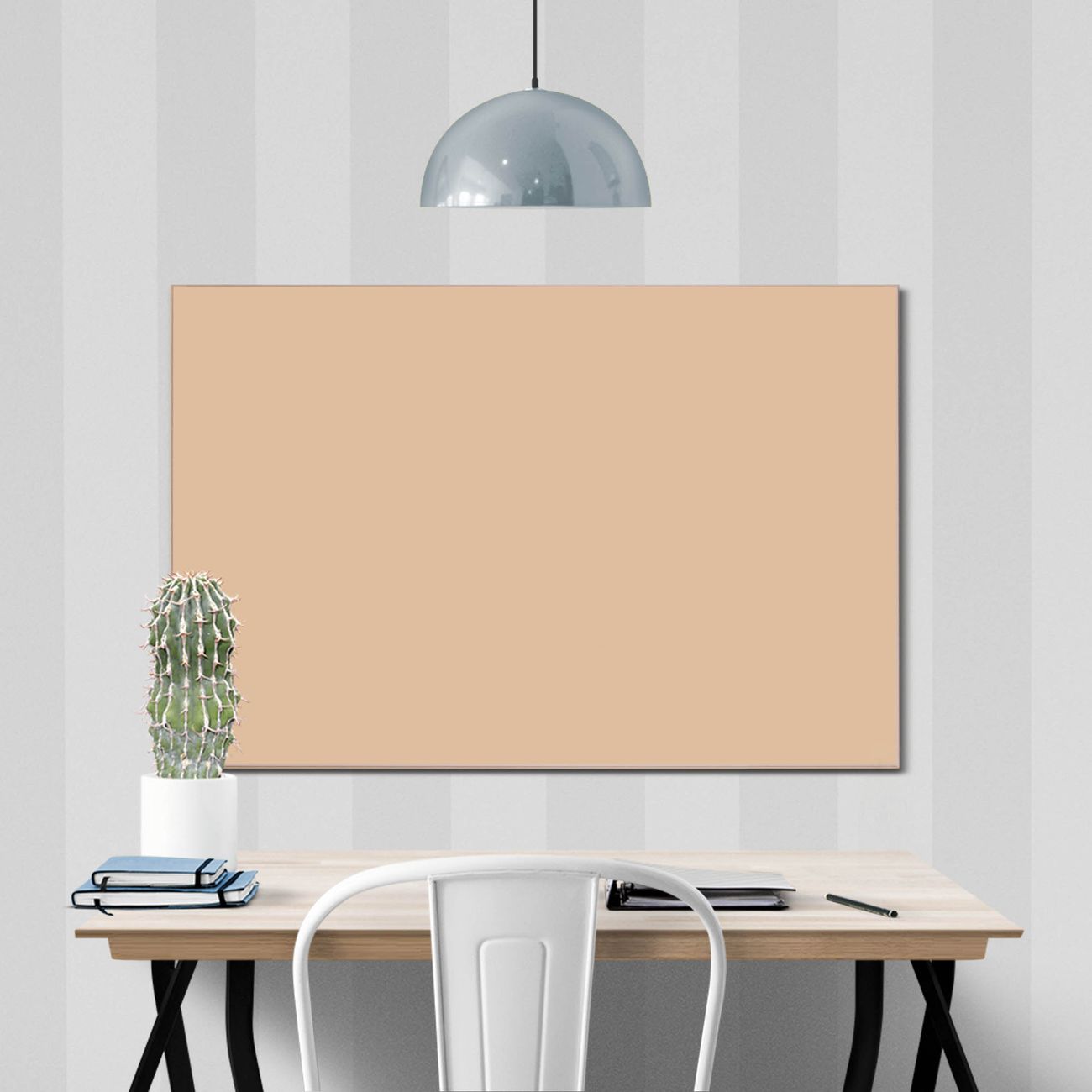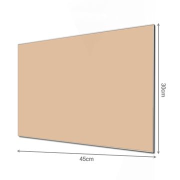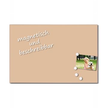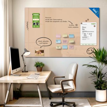 Material: 4mm Sicherheitsglas mit Metallrückwand Eigenschaften: beschreibbar, magnetisch, kratzfest Maße: 45x30x0,6cm, 2,03kg schwer Farbe Nummer 0032 Sandstein Zubehör: inklusive 4 Neodym-Magnete
