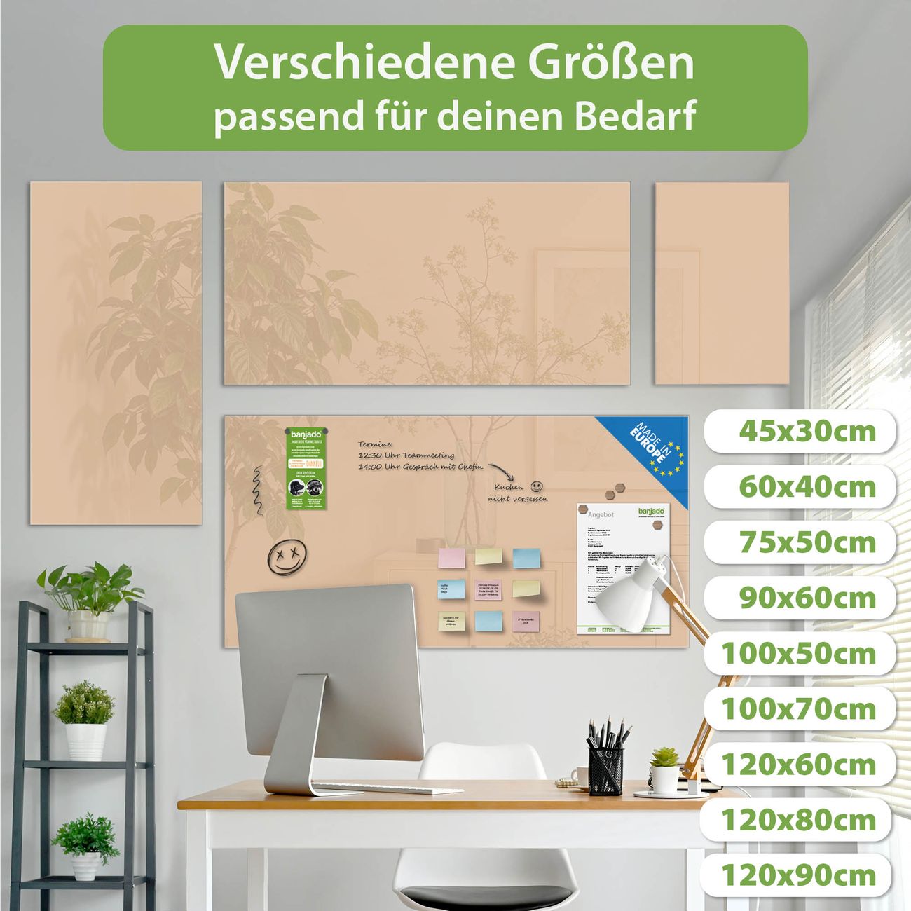 Die banjado Glas Magnettafel mit dem Motiv Farbe Sandstein verbindet Funktionalität mit Stil. Sie ersetzt das Zettelchaos durch klare Strukturen und bringt dabei eine warme, natürliche Atmosphäre in Ihr Zuhause. Ob im Büro, in der Küche oder im Eingangsbereich - dieses Design-Board zieht Blicke an und sorgt für Ordnung mit Charakter.