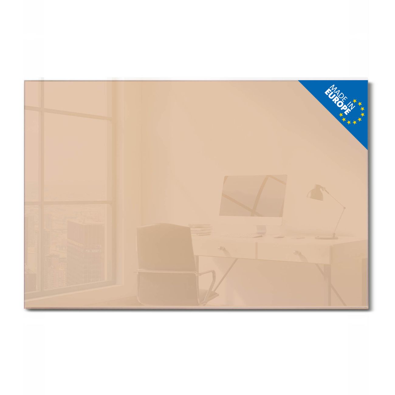 Material: 4mm Sicherheitsglas mit Metallrückwand Eigenschaften: beschreibbar, magnetisch, kratzfest Maße: 120x80x0,6cm, 14,40kg schwer Farbe Nummer 0032 Sandstein Zubehör: inklusive 4 Neodym-Magnete