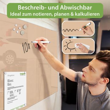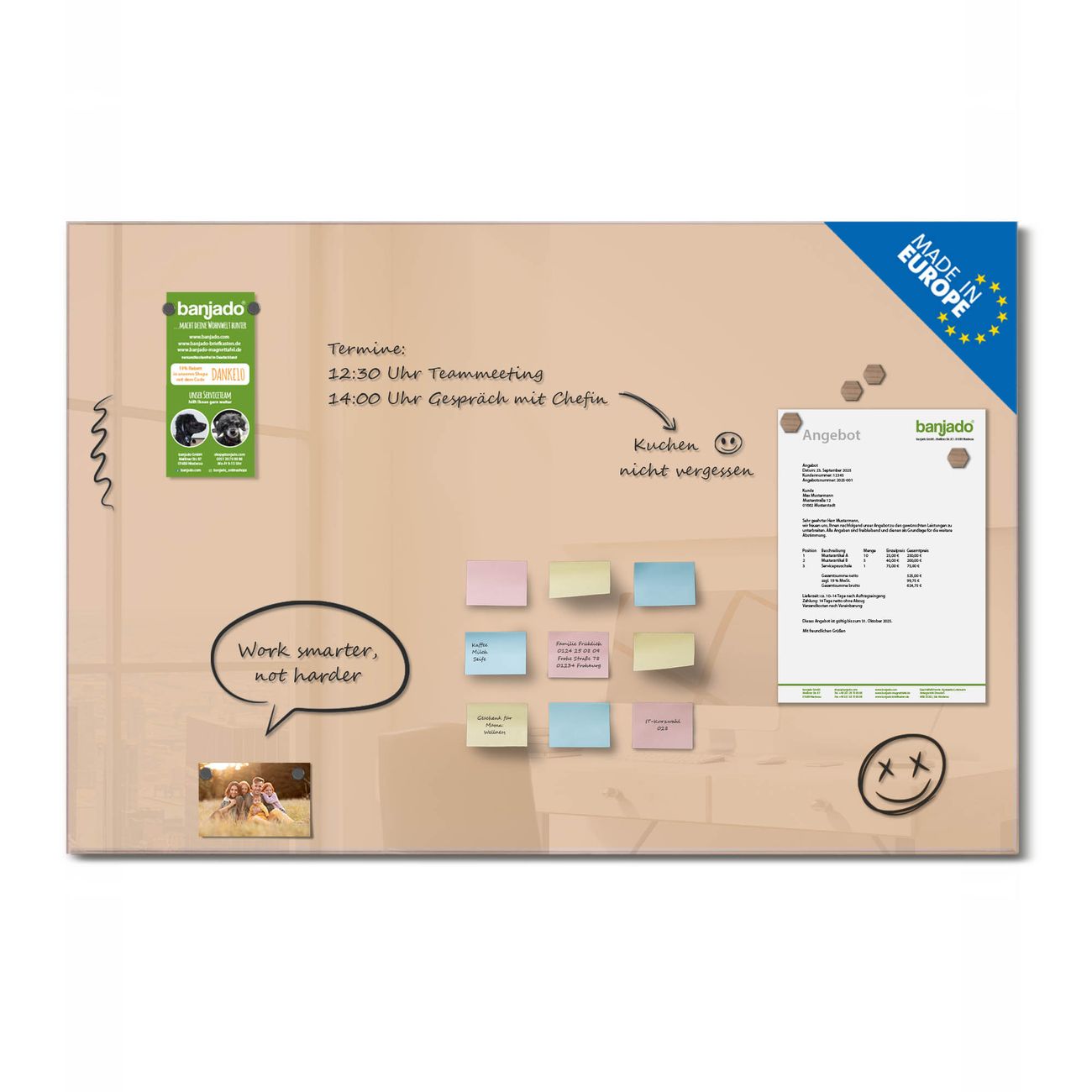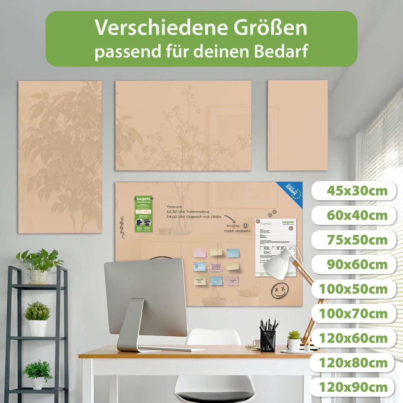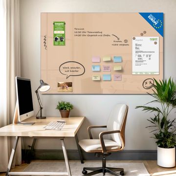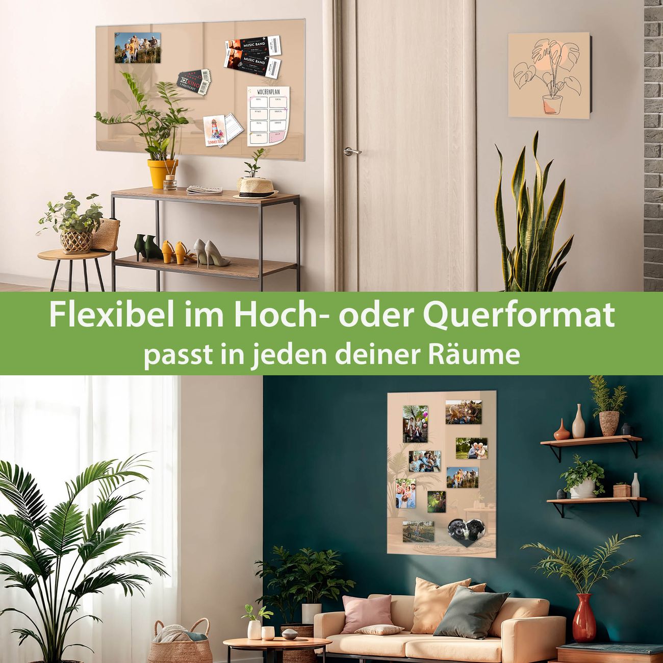 Die banjado Glas Magnettafel mit dem Motiv Farbe Sandstein verbindet Funktionalität mit Stil. Sie ersetzt das Zettelchaos durch klare Strukturen und bringt dabei eine warme, natürliche Atmosphäre in Ihr Zuhause. Ob im Büro, in der Küche oder im Eingangsbereich - dieses Design-Board zieht Blicke an und sorgt für Ordnung mit Charakter.