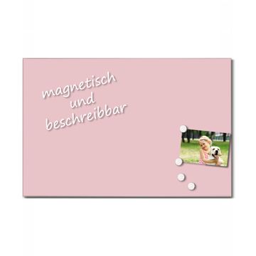 Material: 4mm Sicherheitsglas mit Metallrückwand Eigenschaften: beschreibbar, magnetisch, kratzfest Maße: 45x30x0,6cm, 2,03kg schwer Farbe Nummer 0033 Altrosa Zubehör: inklusive 4 Neodym-Magnete