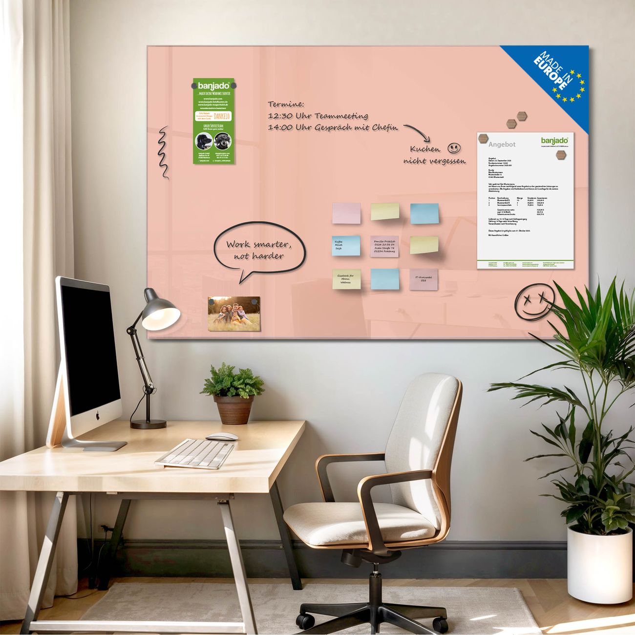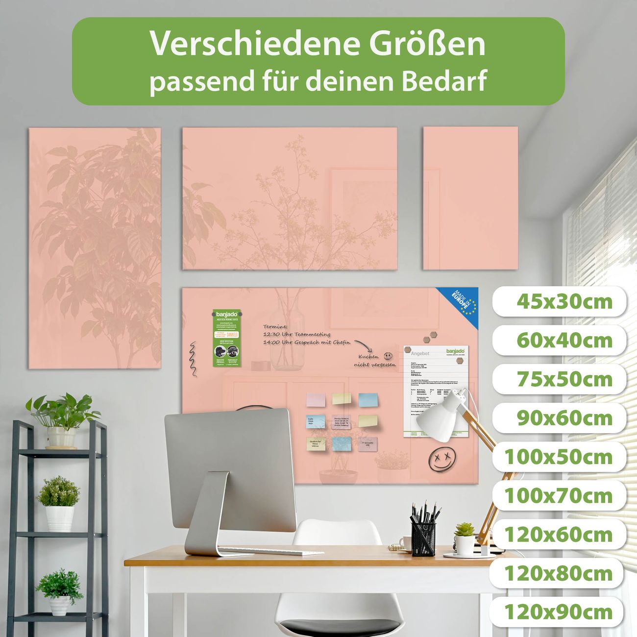 Die banjado Glas Magnettafel mit dem Motiv Farbe Aprikot verbindet Funktionalität mit Stil. Sie ersetzt das Zettelchaos durch klare Strukturen und bringt dabei eine warme, natürliche Atmosphäre in Ihr Zuhause. Ob im Büro, in der Küche oder im Eingangsbereich - dieses Design-Board zieht Blicke an und sorgt für Ordnung mit Charakter.