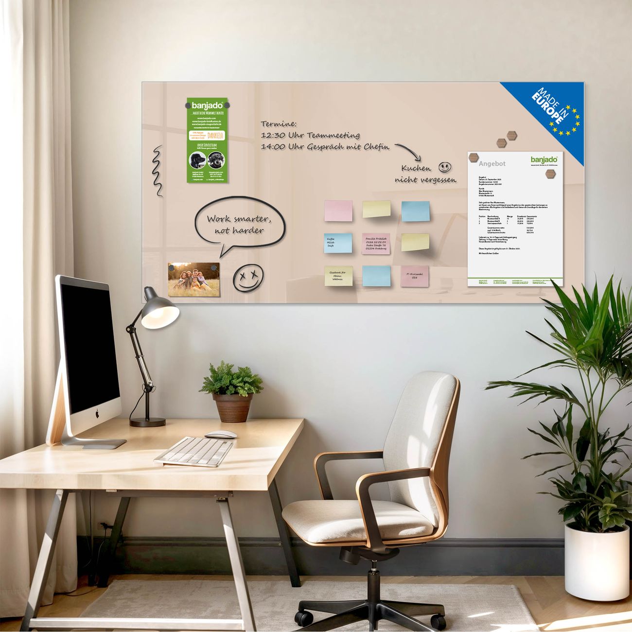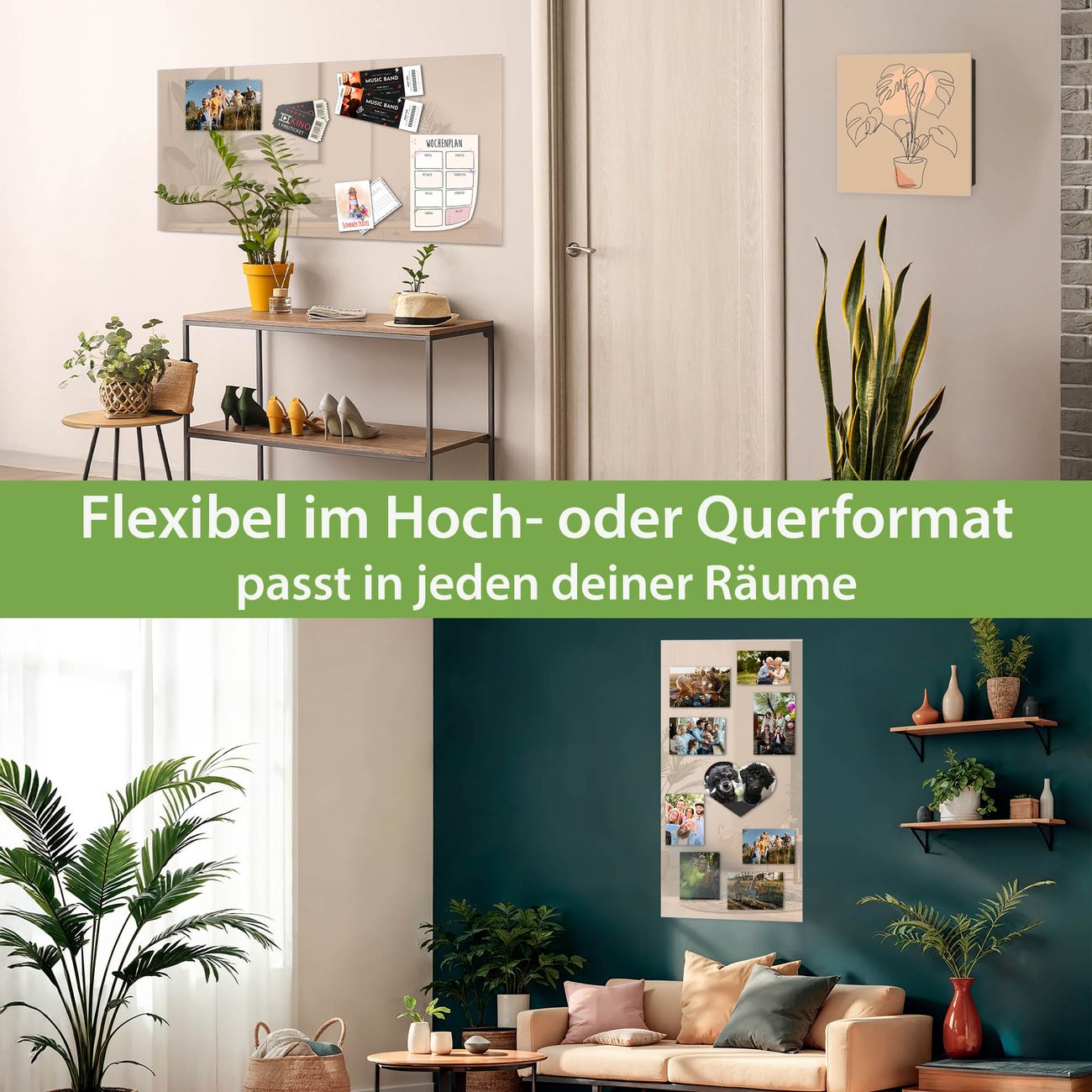 Die banjado Glas Magnettafel mit dem Motiv Farbe Taupe verbindet Funktionalität mit Stil. Sie ersetzt das Zettelchaos durch klare Strukturen und bringt dabei eine warme, natürliche Atmosphäre in Ihr Zuhause. Ob im Büro, in der Küche oder im Eingangsbereich - dieses Design-Board zieht Blicke an und sorgt für Ordnung mit Charakter.