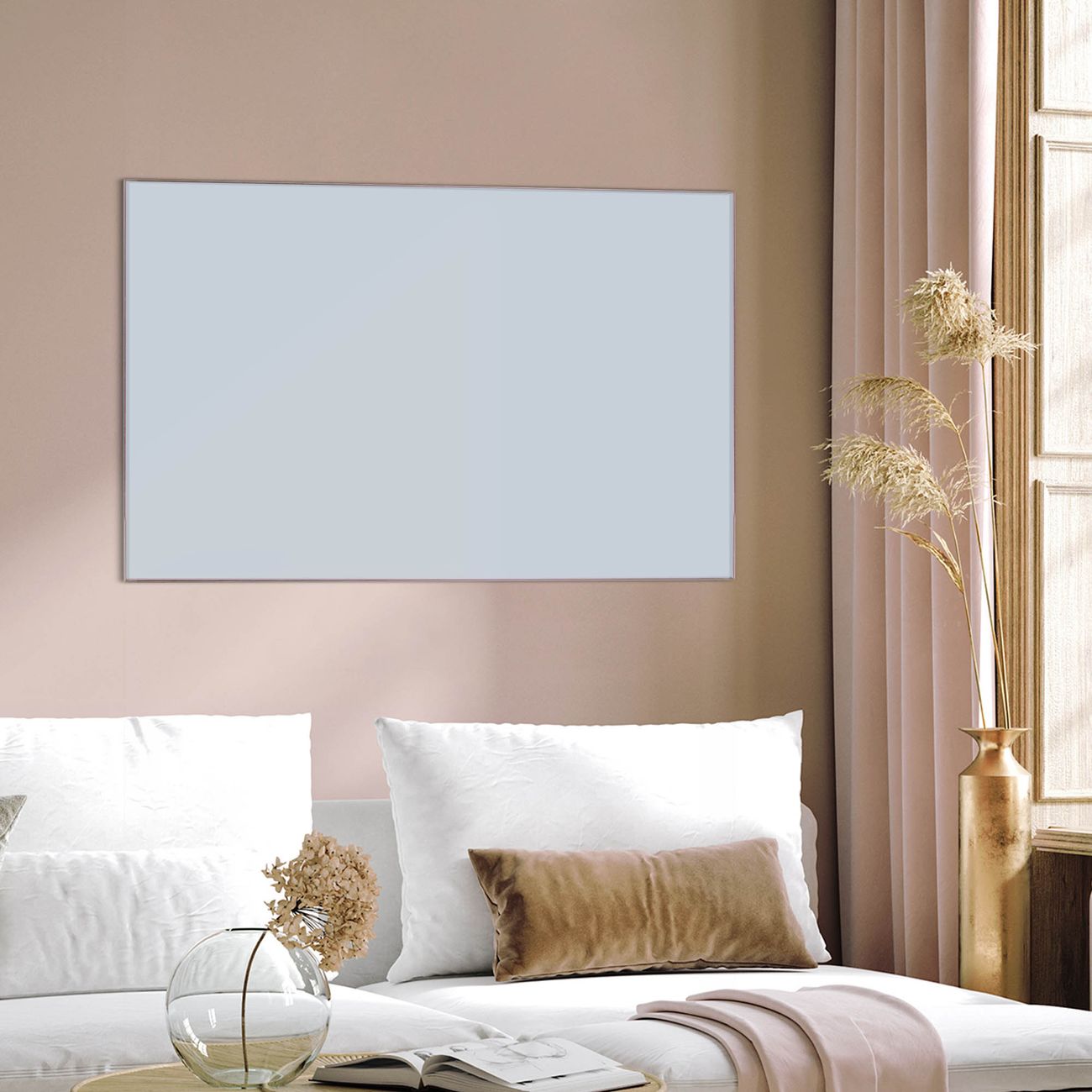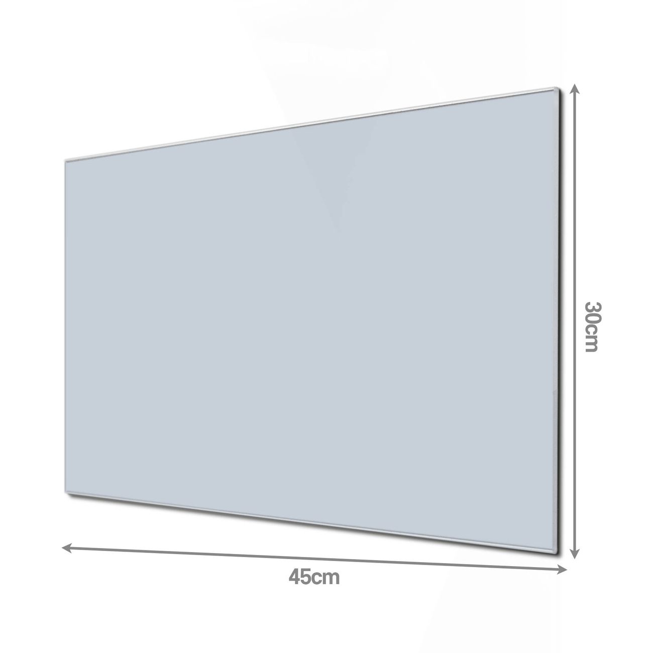 Material: 4mm Sicherheitsglas mit Metallrückwand Eigenschaften: beschreibbar, magnetisch, kratzfest Maße: 45x30x0,6cm, 2,03kg schwer Farbe Nummer 0038 Eisblau Zubehör: inklusive 4 Neodym-Magnete