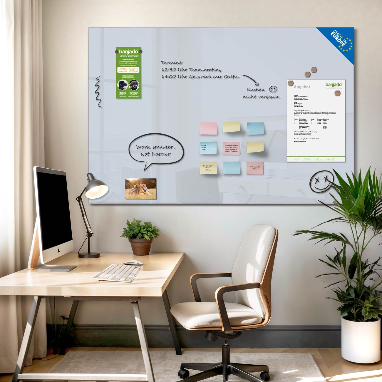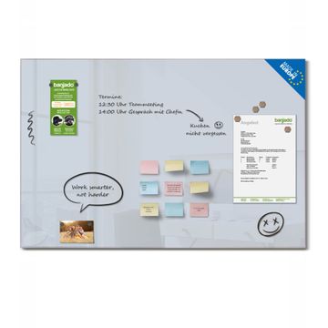 Das Magnetboard besteht aus gehärtetem Glas, die Rückwand aus einem magnetischen Stahlblech. Durch die superflache Bauweise haben Sie die Wahl aus einer Vielzahl von Befestigungsmöglichkeiten. Sie können die Magnettafel mit einem Montagekleber superflach an die Wand kleben oder Sie wählen eines unserer passenden Befestigungssets, welches eine optimale Montage garantiert. Die Magnetwand besteht aus zertifiziertem Sicherheitsglas. Durch die mitgelieferten 4 Neodym-Magnete ist Ihre Glas Magnettafel sofort einsatzbereit. Wichtige Notizen und Informationen können Sie einfach mit Kreidestiften auf die Glasmagnettafel schreiben und rückstandslos wieder entfernen.