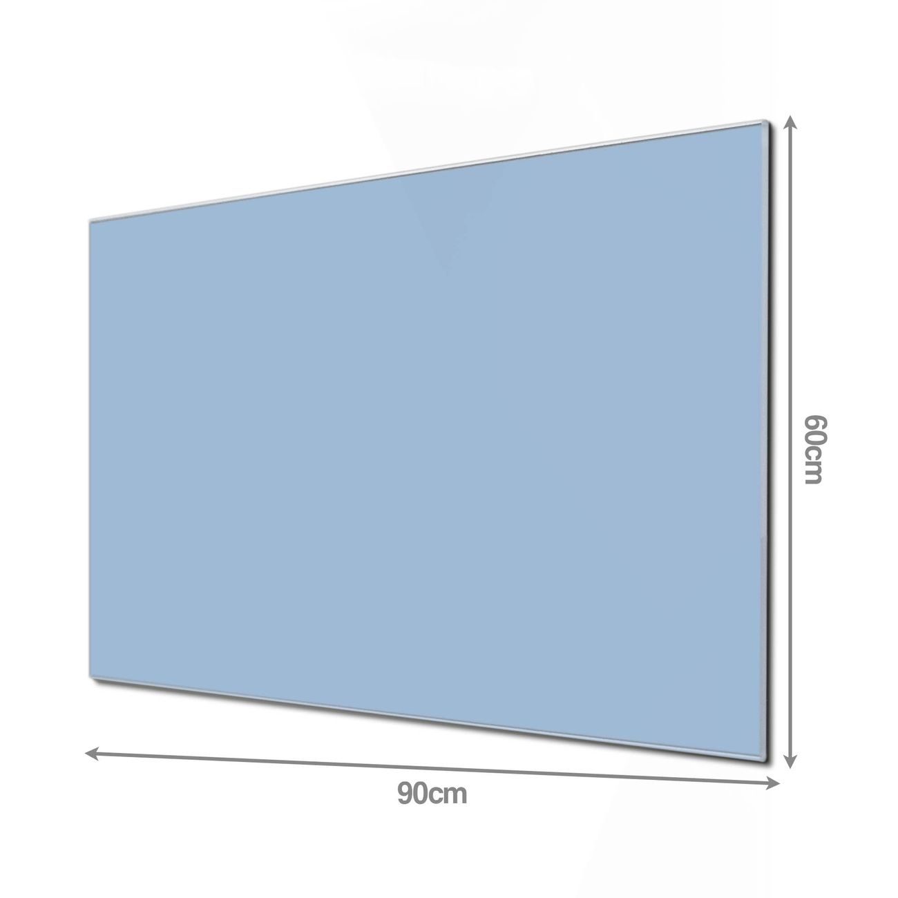 Material: 4mm Sicherheitsglas mit Metallrückwand Eigenschaften: beschreibbar, magnetisch, kratzfest Maße: 90x60x0,6cm, 8,10kg schwer Farbe Nummer 0040 Pastellblau Zubehör: inklusive 4 Neodym-Magnete