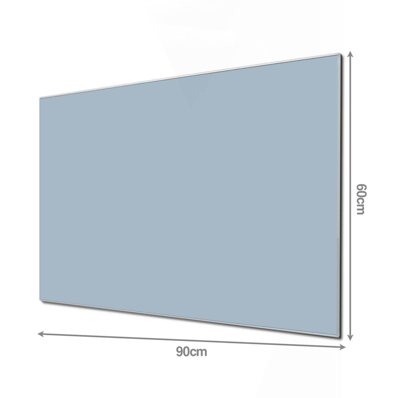 Material: 4mm Sicherheitsglas mit Metallrückwand Eigenschaften: beschreibbar, magnetisch, kratzfest Maße: 90x60x0,6cm, 8,10kg schwer Farbe Nummer 0041 Schieferblau Zubehör: inklusive 4 Neodym-Magnete