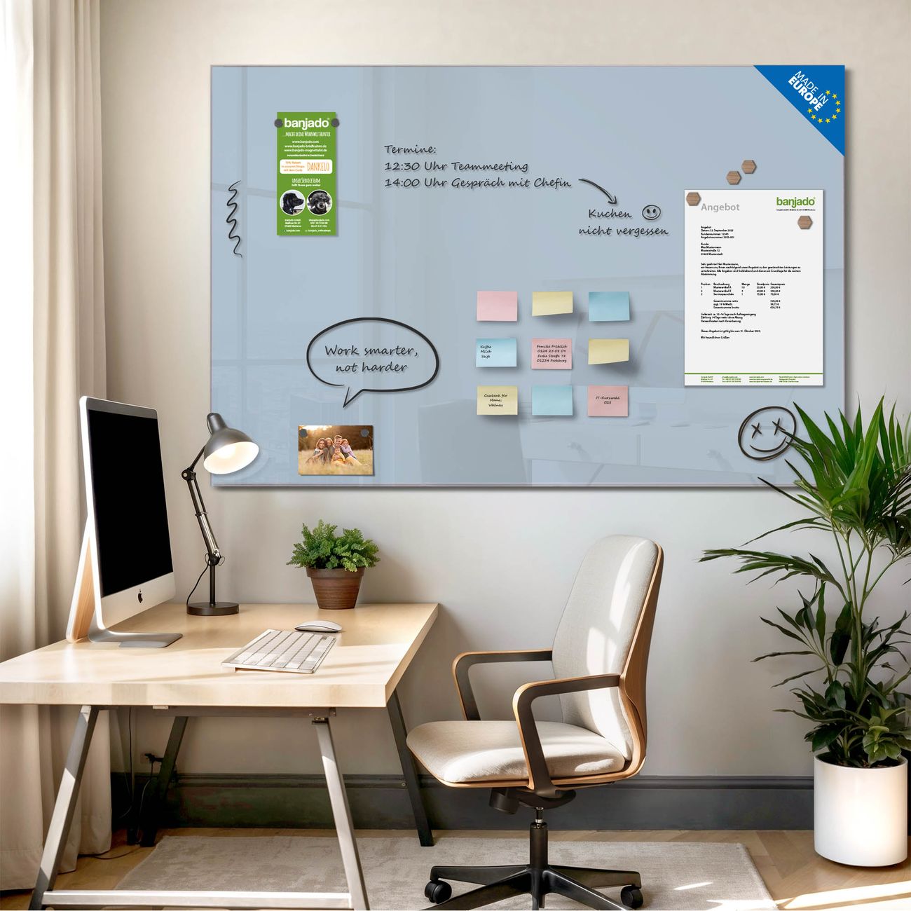 Glas Magnettafel im Querformat Farbe Schieferblau