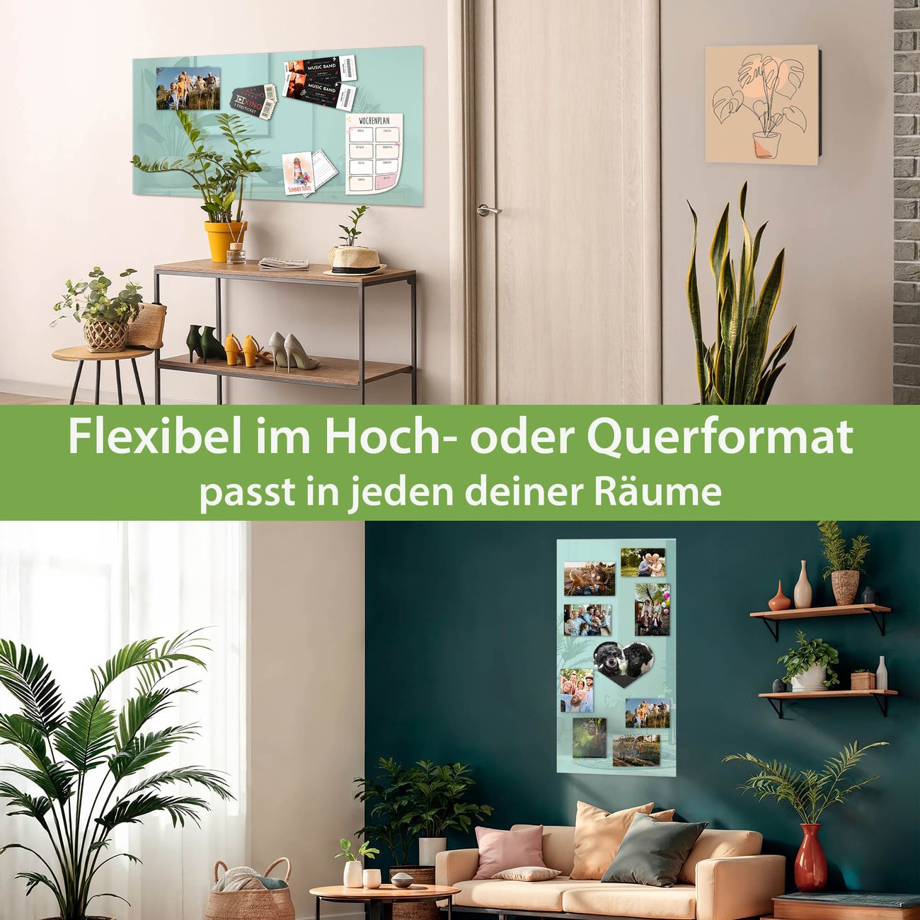 Die banjado Glas Magnettafel mit dem Motiv Farbe Mint verbindet Funktionalität mit Stil. Sie ersetzt das Zettelchaos durch klare Strukturen und bringt dabei eine warme, natürliche Atmosphäre in Ihr Zuhause. Ob im Büro, in der Küche oder im Eingangsbereich - dieses Design-Board zieht Blicke an und sorgt für Ordnung mit Charakter.