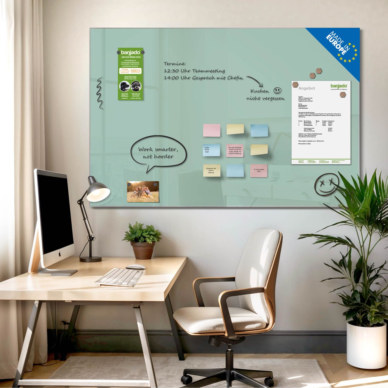 Die banjado Glas Magnettafel mit dem Motiv Farbe Salbei verbindet Funktionalität mit Stil. Sie ersetzt das Zettelchaos durch klare Strukturen und bringt dabei eine warme, natürliche Atmosphäre in Ihr Zuhause. Ob im Büro, in der Küche oder im Eingangsbereich - dieses Design-Board zieht Blicke an und sorgt für Ordnung mit Charakter.
