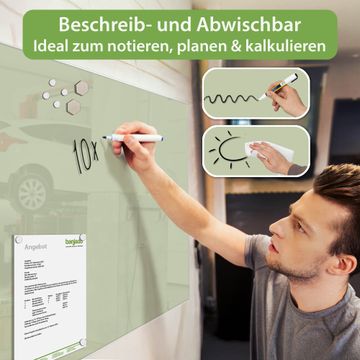 Die banjado Glas Magnettafel mit dem Motiv Farbe Olive verbindet Funktionalität mit Stil. Sie ersetzt das Zettelchaos durch klare Strukturen und bringt dabei eine warme, natürliche Atmosphäre in Ihr Zuhause. Ob im Büro, in der Küche oder im Eingangsbereich - dieses Design-Board zieht Blicke an und sorgt für Ordnung mit Charakter.