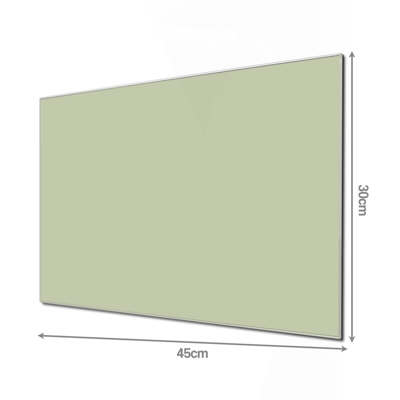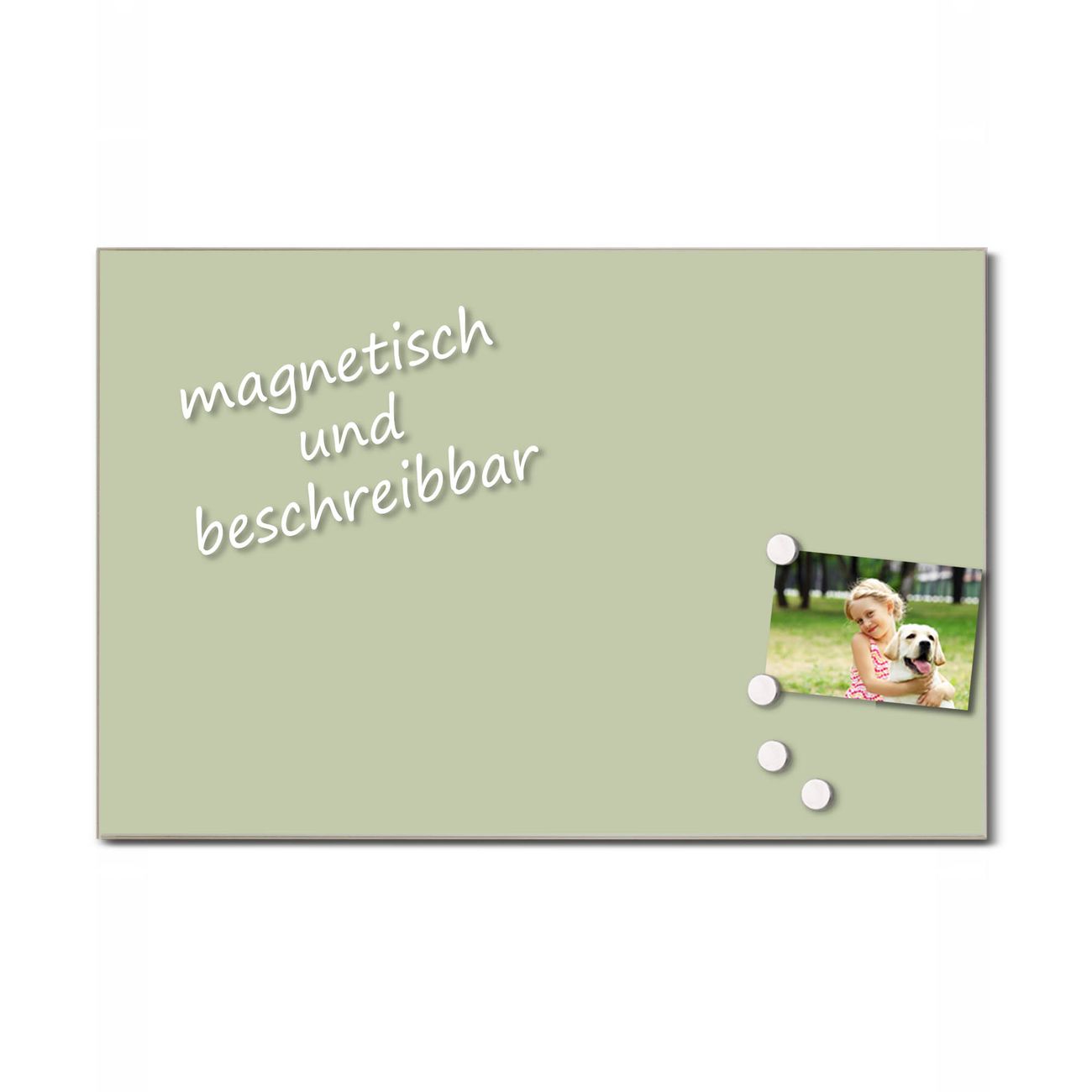Material: 4mm Sicherheitsglas mit Metallrückwand Eigenschaften: beschreibbar, magnetisch, kratzfest Maße: 45x30x0,6cm, 2,03kg schwer Farbe Nummer 0045 Olive Zubehör: inklusive 4 Neodym-Magnete