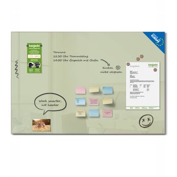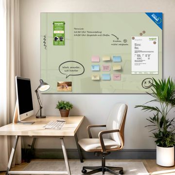 Die banjado Glas Magnettafel im Querformat mit Motiv Farbe Olive bringt Ordnung in Ihr Zettelchaos. Fotos, Termine, Notizen oder Rezepte lassen Sich hier stilvoll mit Magneten ordnen, so behalten Sie alles Wichtige im Blick. Das Memoboard aus Glas ist beschreibbar und wird Ihnen bereits mit 4 Neodym-Magneten geliefert. Das Format bietet Ihnen ausreichend Platz um alle wichtigen Informationen im Blick zu behalten.