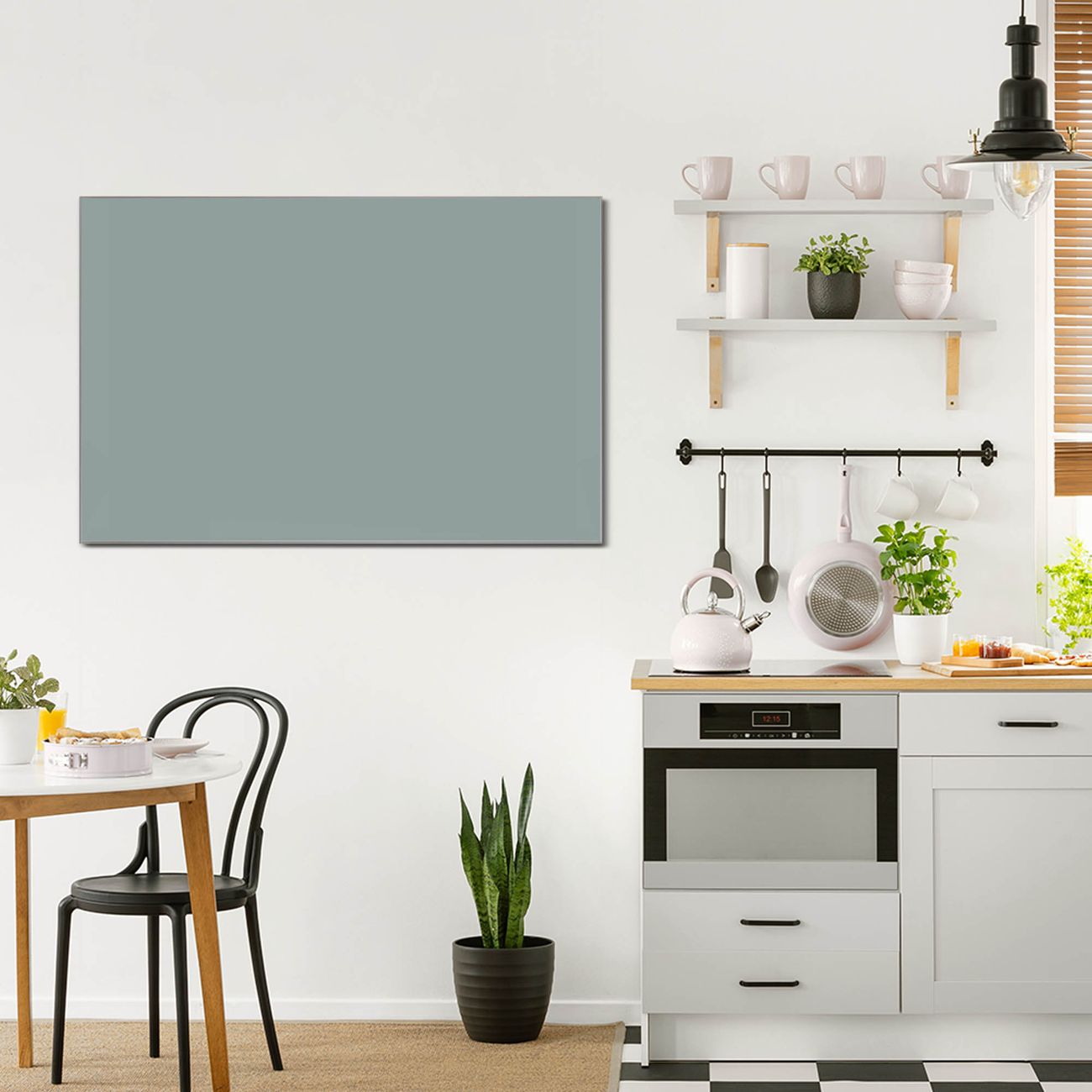 Material: 4mm Sicherheitsglas mit Metallrückwand Eigenschaften: beschreibbar, magnetisch, kratzfest Maße: 120x80x0,6cm, 14,40kg schwer Farbe Nummer 0047 Steingrau Zubehör: inklusive 4 Neodym-Magnete
