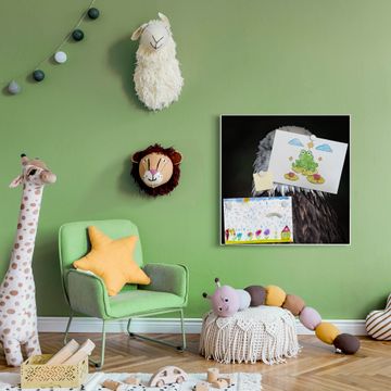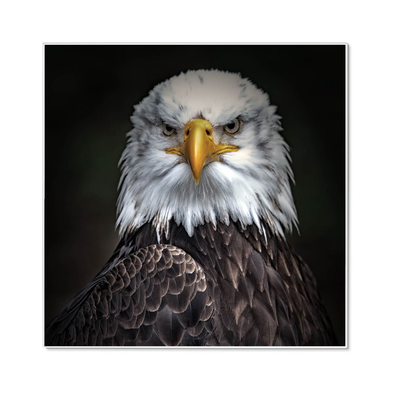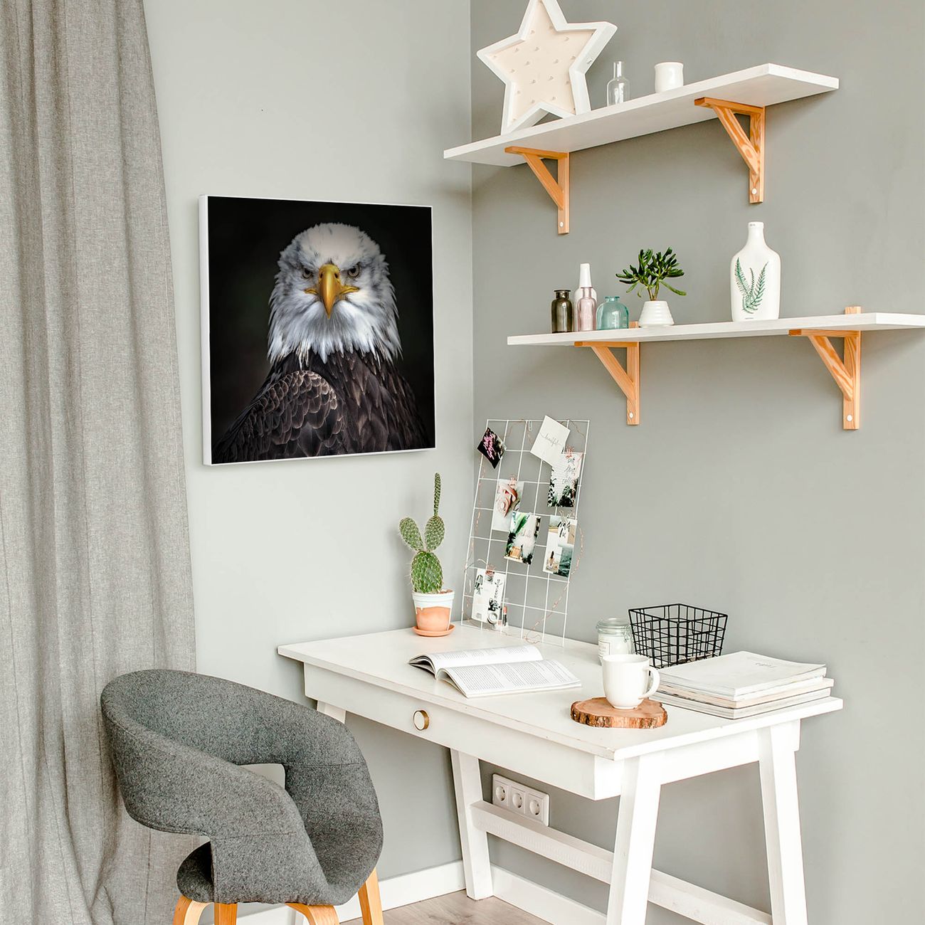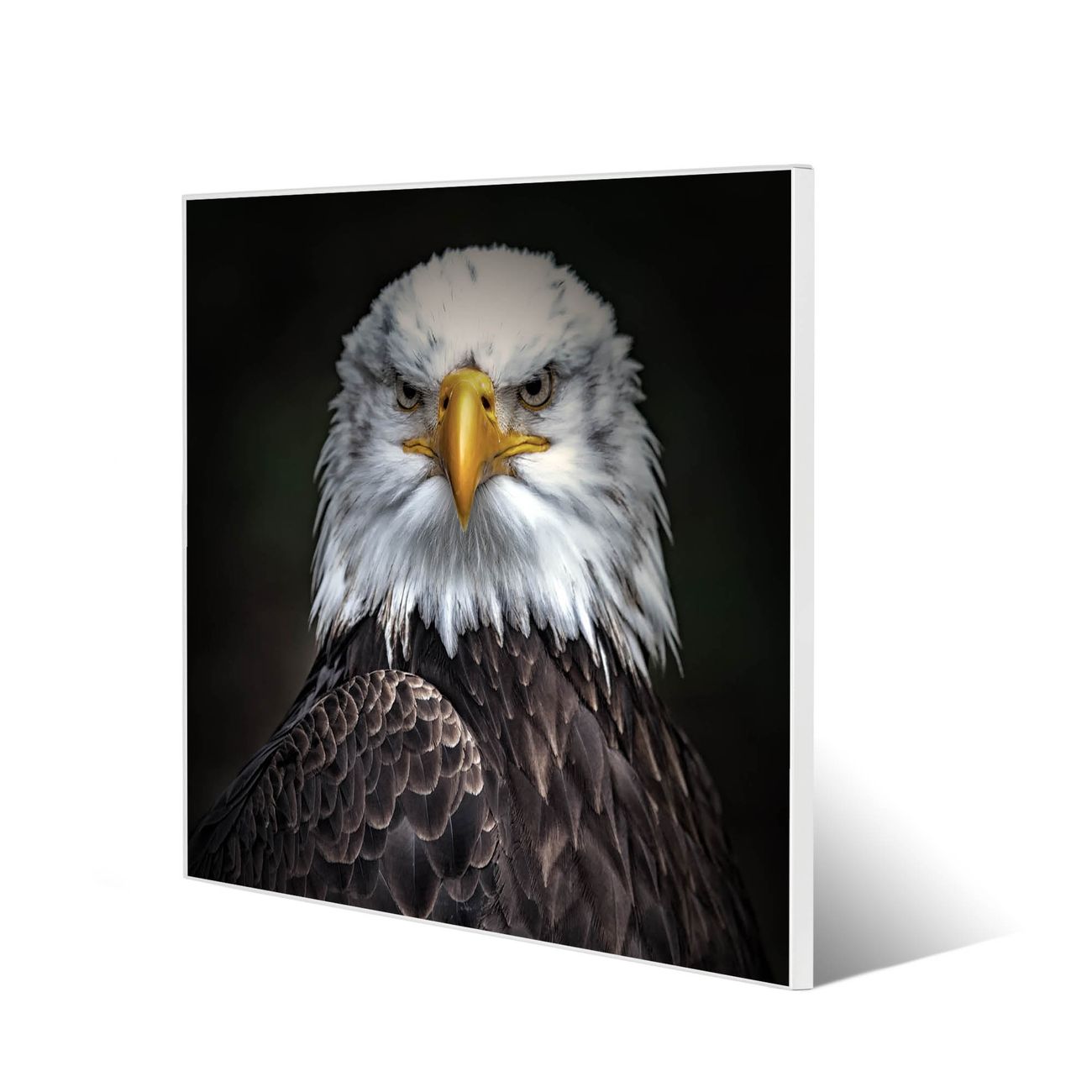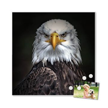 Motiv Adler Nr. 12369 Größe: 50x50x2cm BxHxT Gewicht: ca. 1,5 kg Material: Stahl weiß lackiert, Premiumfolie mit Schutzlaminat Magnete: für Dekomagnete geeignet beschreibbar: Nein Format: Quadratisch Zubehör: 4 Magnete, Schrauben und Dübel