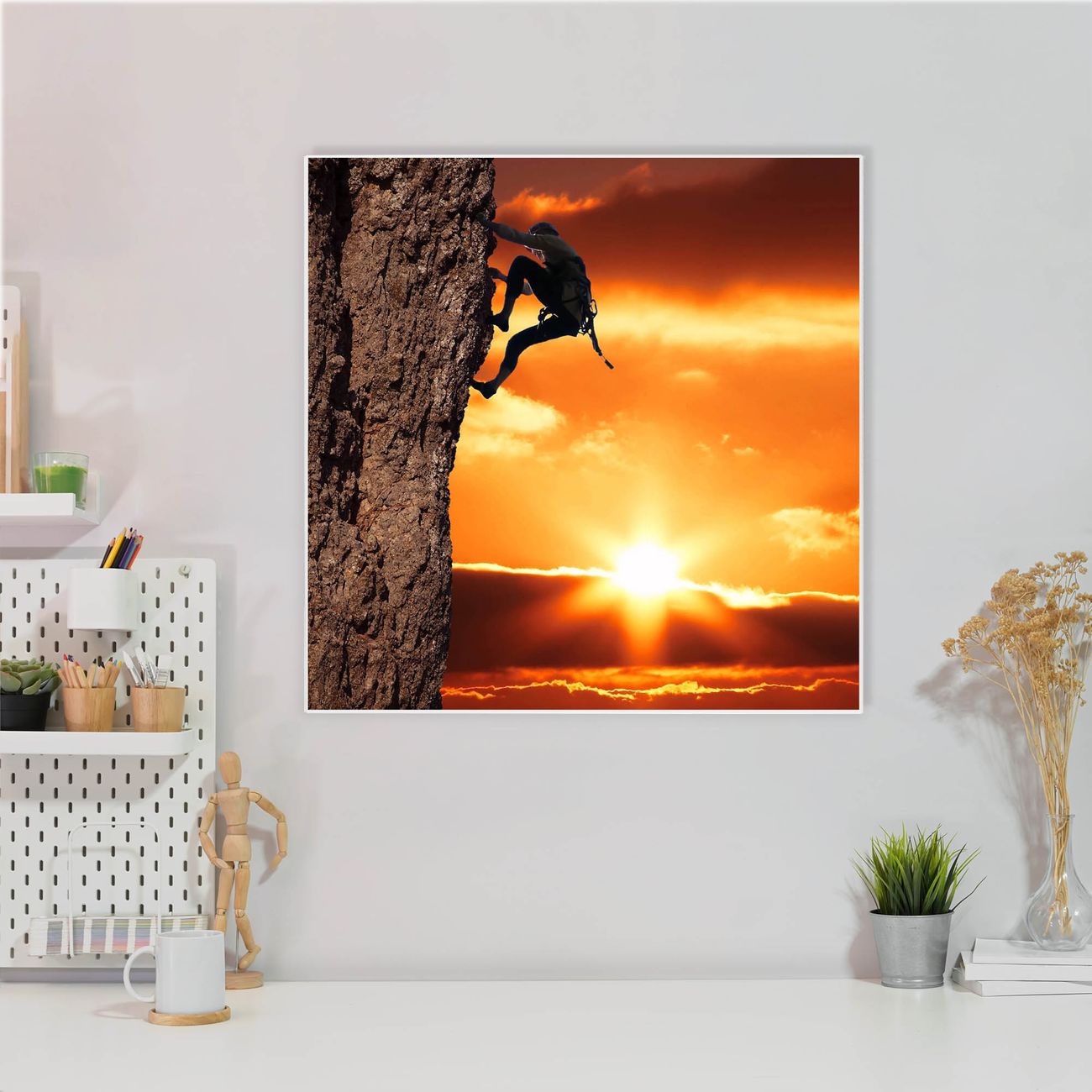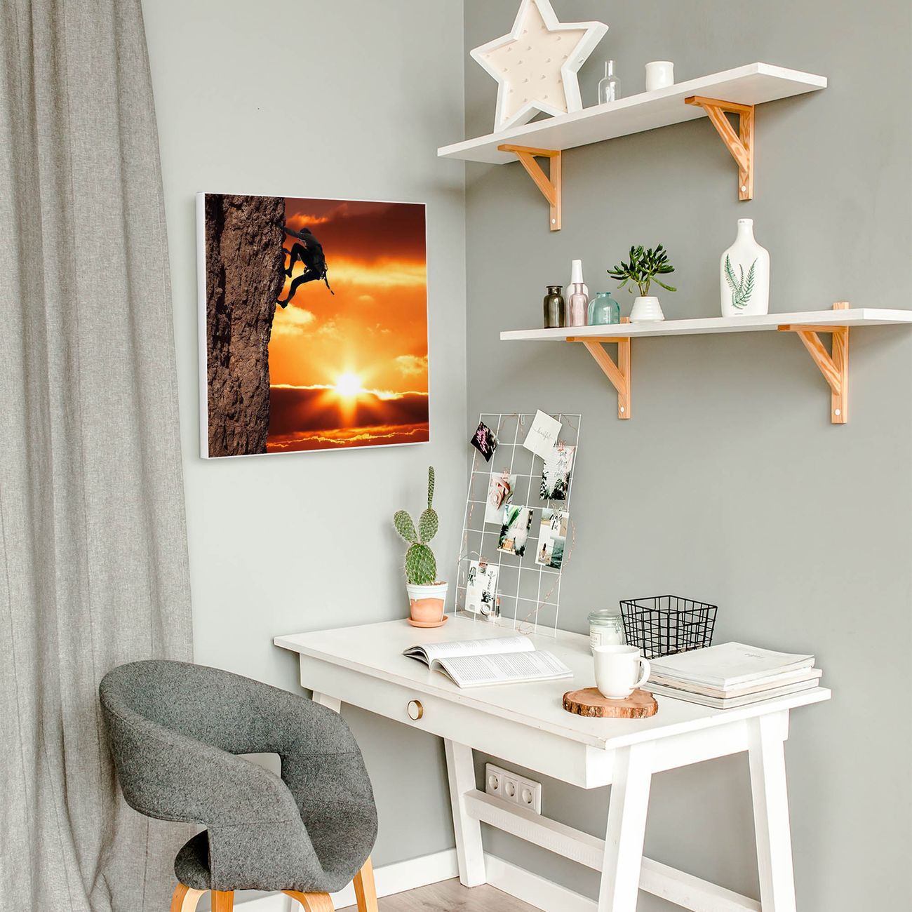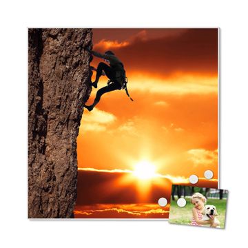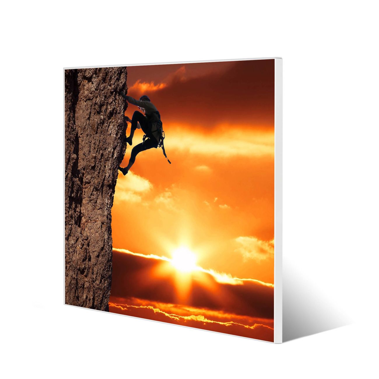 Motiv Bergsteiger Nr. 10117 Größe: 50x50x2cm BxHxT Gewicht: ca. 1,5 kg Material: Stahl weiß lackiert, Premiumfolie mit Schutzlaminat Magnete: für Dekomagnete geeignet beschreibbar: Nein Format: Quadratisch Zubehör: 4 Magnete, Schrauben und Dübel