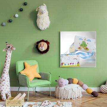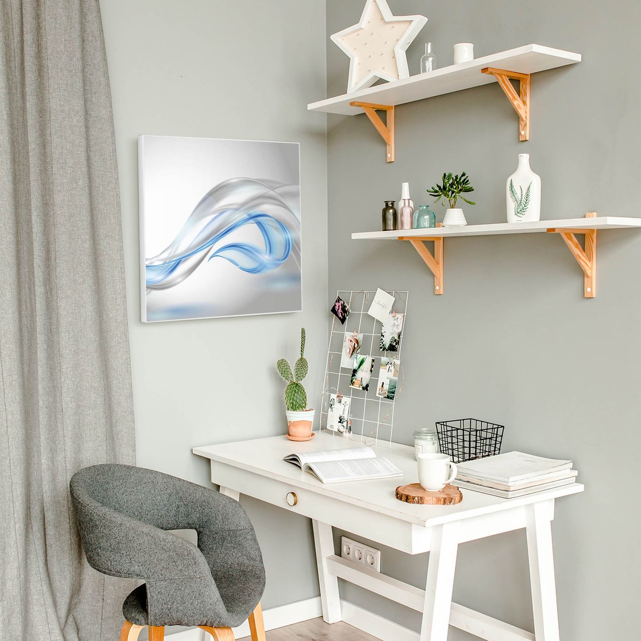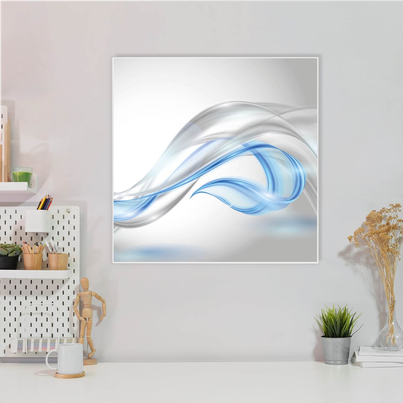 Motiv Blauer Schleier Nr. 10736 Größe: 50x50x2cm BxHxT Gewicht: ca. 1,5 kg Material: Stahl weiß lackiert, Premiumfolie mit Schutzlaminat Magnete: für Dekomagnete geeignet beschreibbar: Nein Format: Quadratisch Zubehör: 4 Magnete, Schrauben und Dübel