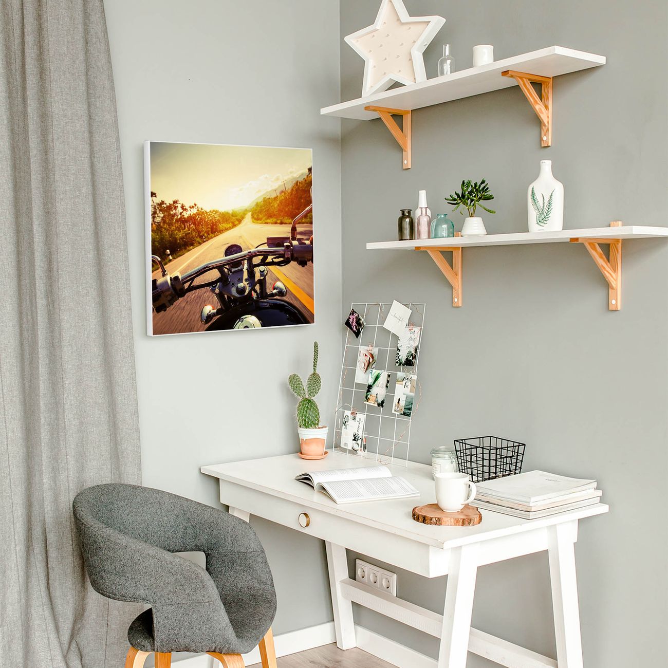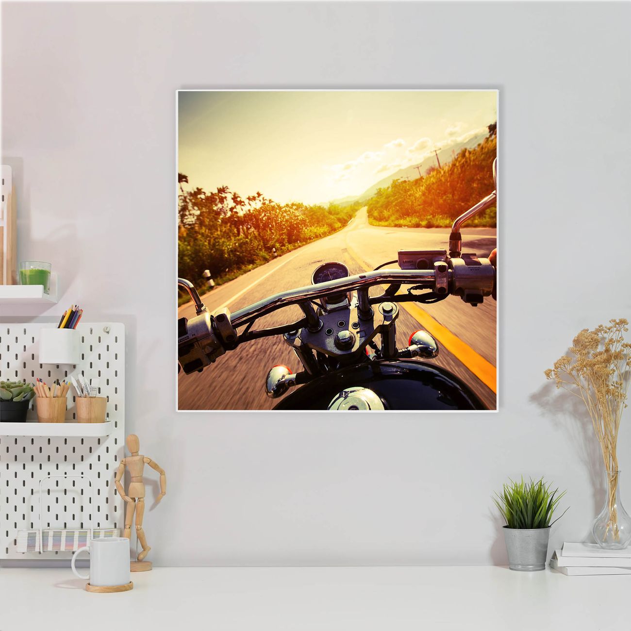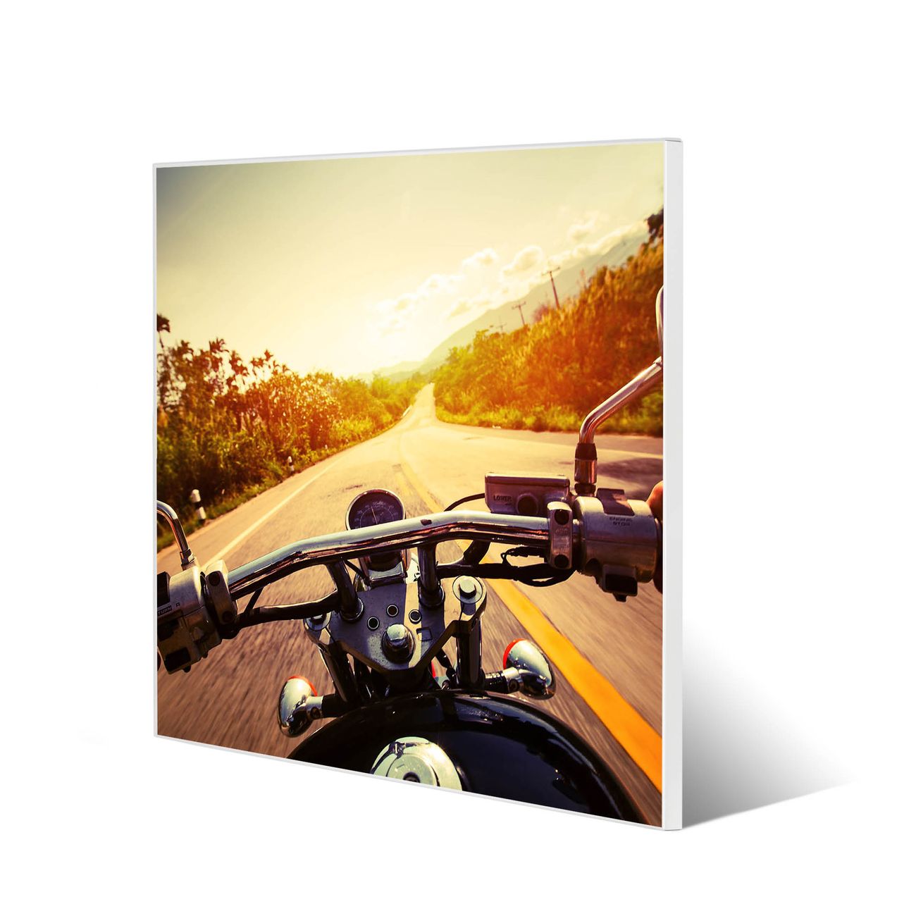 Motiv Easy Rider Nr. 12695 Größe: 50x50x2cm BxHxT Gewicht: ca. 1,5 kg Material: Stahl weiß lackiert, Premiumfolie mit Schutzlaminat Magnete: für Dekomagnete geeignet beschreibbar: Nein Format: Quadratisch Zubehör: 4 Magnete, Schrauben und Dübel