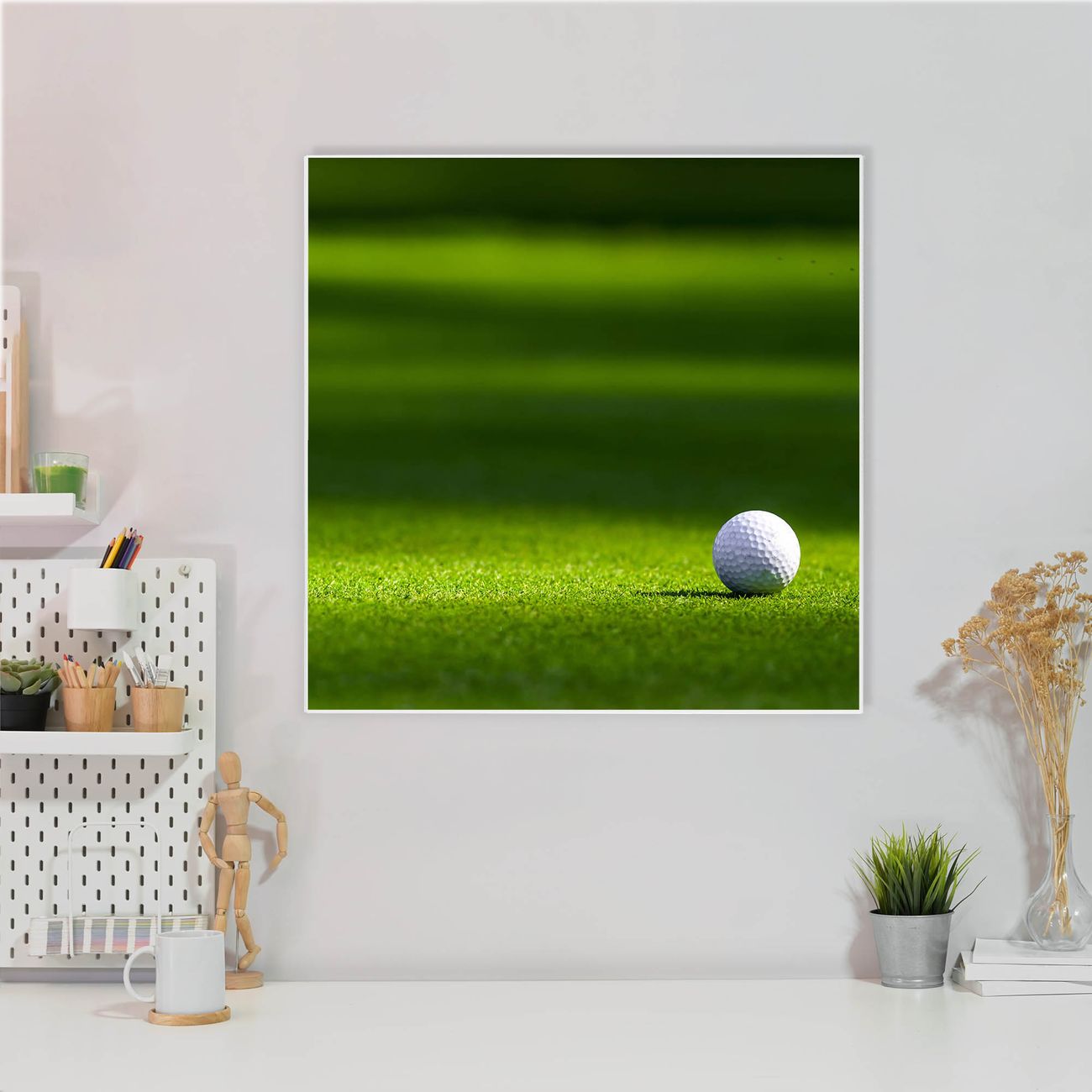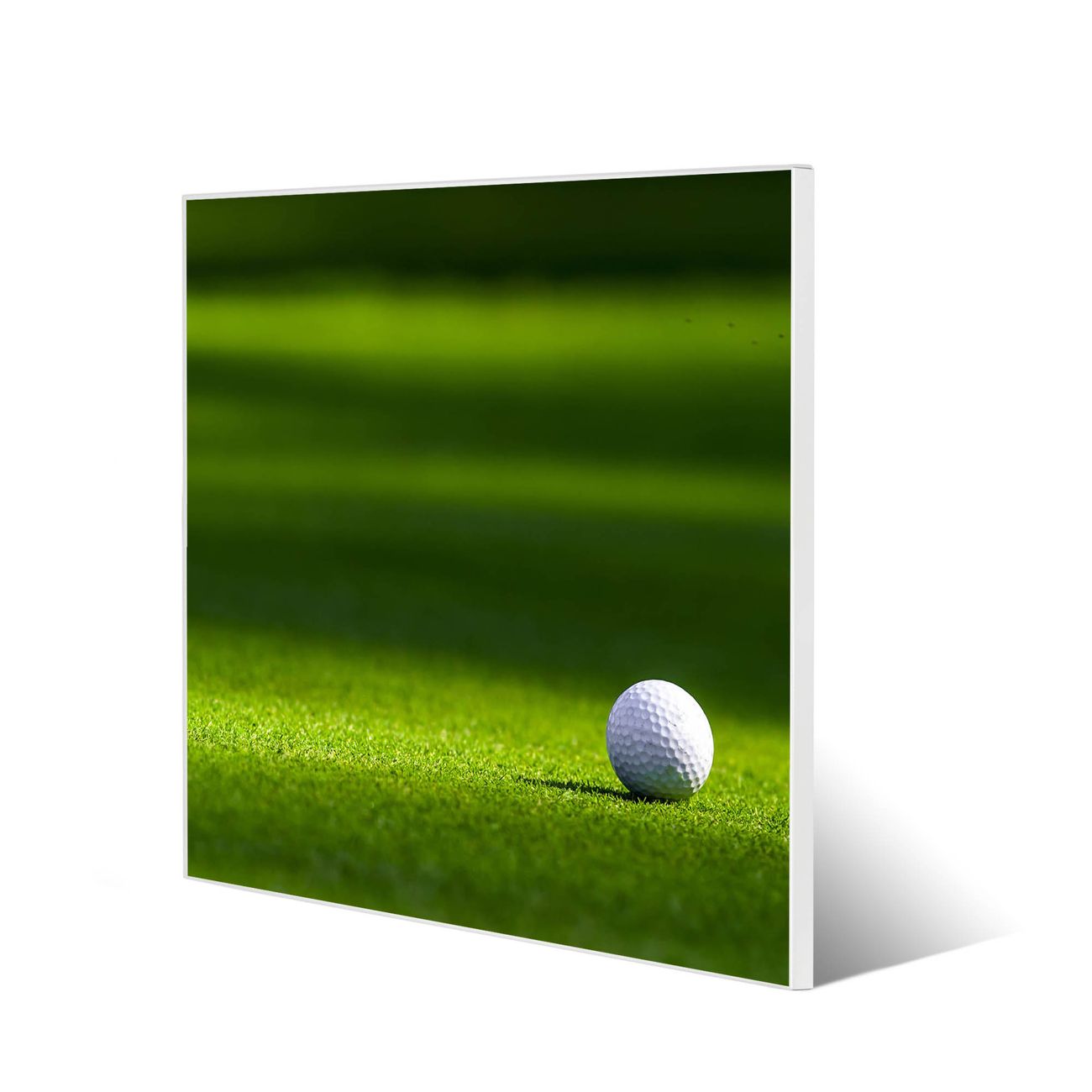 Motiv Einsamer Golfball Nr. 10740 Größe: 50x50x2cm BxHxT Gewicht: ca. 1,5 kg Material: Stahl weiß lackiert, Premiumfolie mit Schutzlaminat Magnete: für Dekomagnete geeignet beschreibbar: Nein Format: Quadratisch Zubehör: 4 Magnete, Schrauben und Dübel