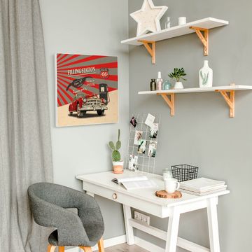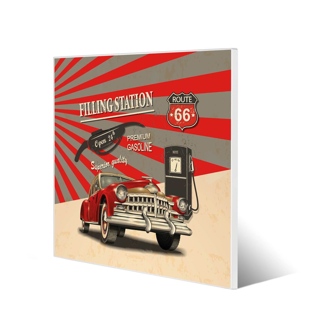 Motiv Filling Station Nr. 11171 Größe: 50x50x2cm BxHxT Gewicht: ca. 1,5 kg Material: Stahl weiß lackiert, Premiumfolie mit Schutzlaminat Magnete: für Dekomagnete geeignet beschreibbar: Nein Format: Quadratisch Zubehör: 4 Magnete, Schrauben und Dübel