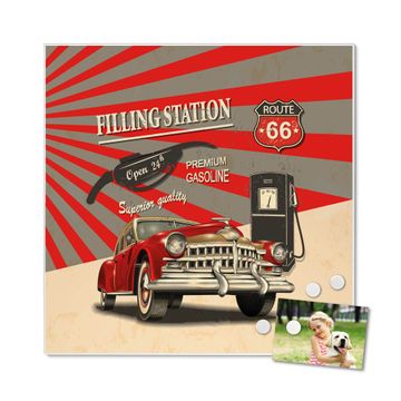 Die banjado Design Magnettafel mit Motiv Motiv Filling Station bringt Ordnung in Ihr Zettelchaos. Fotos, Termine, Notizen oder Rezepte lassen Sich hier stilvoll mit Magneten ordnen, Sie behalten alles im Blick. An der Pinnwand halten alle handelsüblichen Magnete. Mit dieser Pinnwand aus Metall haben Sie auch ohne Notizen und Magnete ein schönes Dekoelement. Das Quadratische Format bietet Ihnen ausreichend Platz um alle wichtigen Informationen im Blick zu behalten.