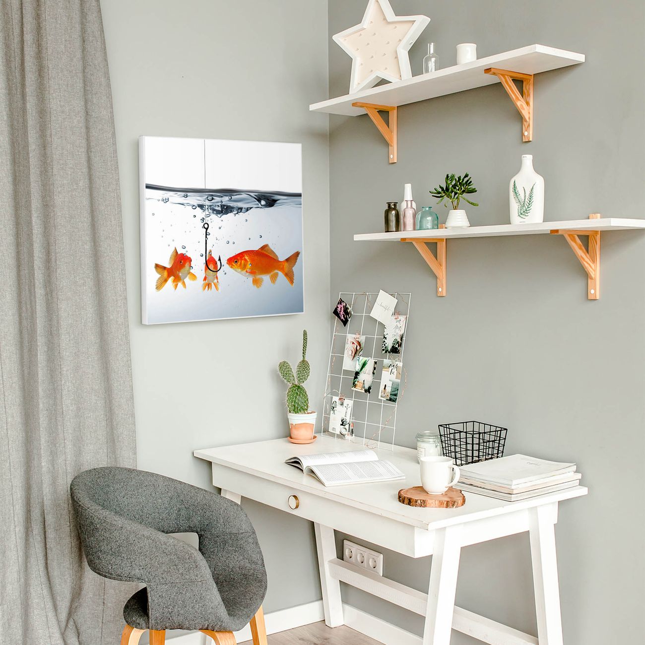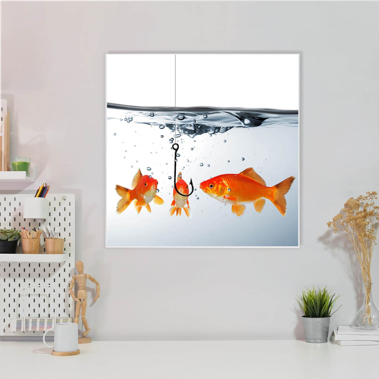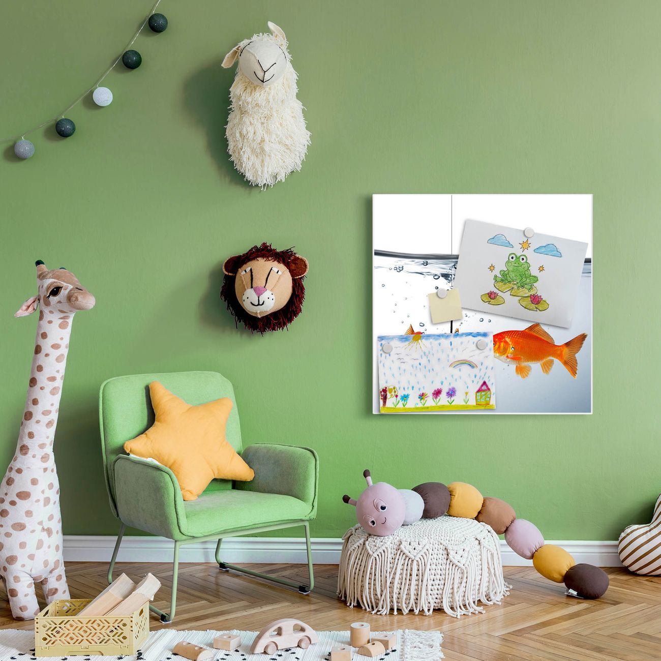Motiv Fische Nr. 10184 Größe: 50x50x2cm BxHxT Gewicht: ca. 1,5 kg Material: Stahl weiß lackiert, Premiumfolie mit Schutzlaminat Magnete: für Dekomagnete geeignet beschreibbar: Nein Format: Quadratisch Zubehör: 4 Magnete, Schrauben und Dübel
