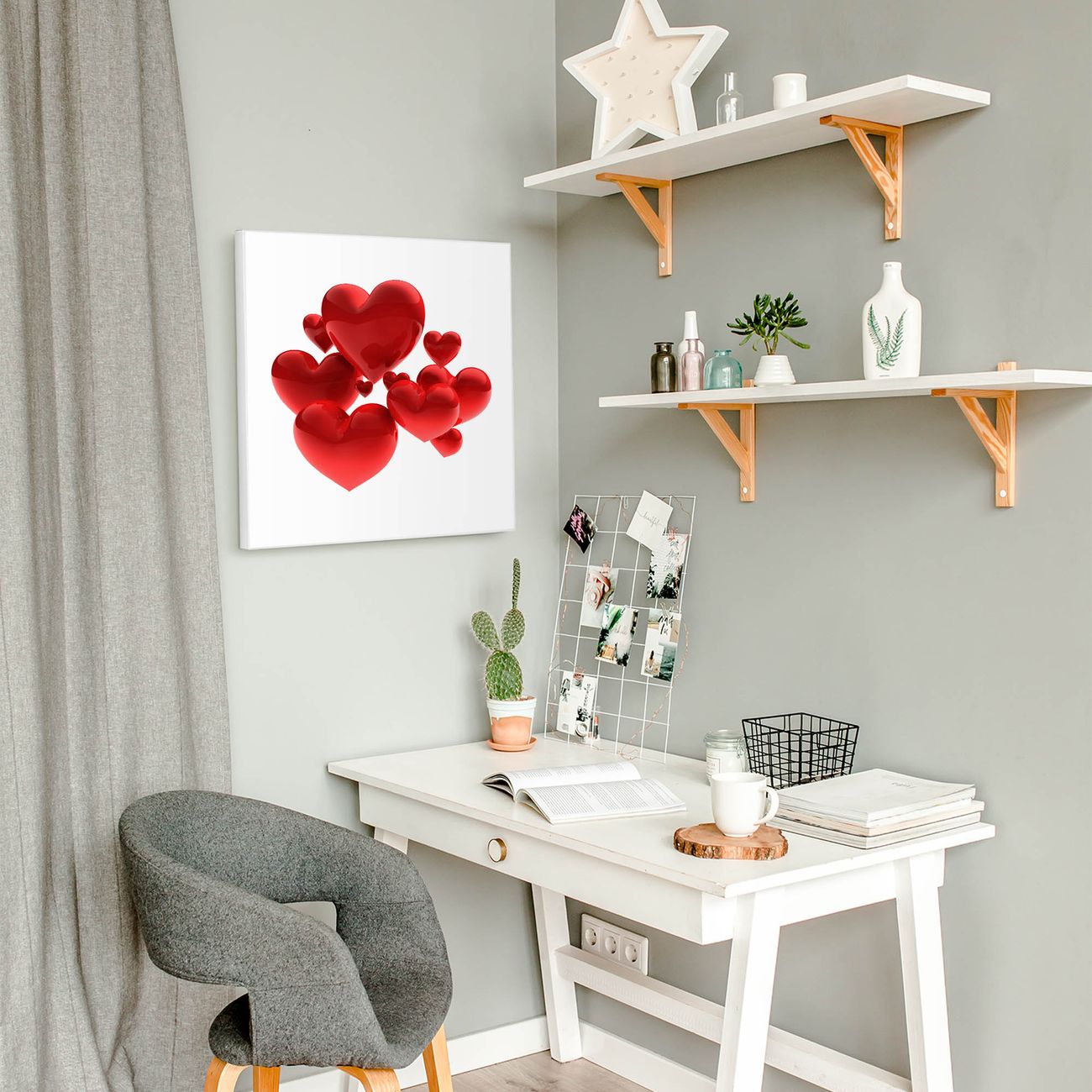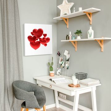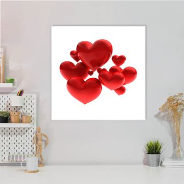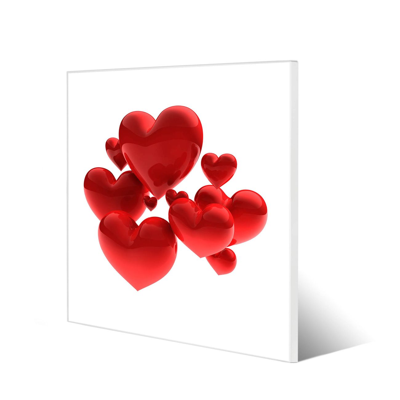 Motiv Fliegende Herzen Nr. 10228 Größe: 50x50x2cm BxHxT Gewicht: ca. 1,5 kg Material: Stahl weiß lackiert, Premiumfolie mit Schutzlaminat Magnete: für Dekomagnete geeignet beschreibbar: Nein Format: Quadratisch Zubehör: 4 Magnete, Schrauben und Dübel