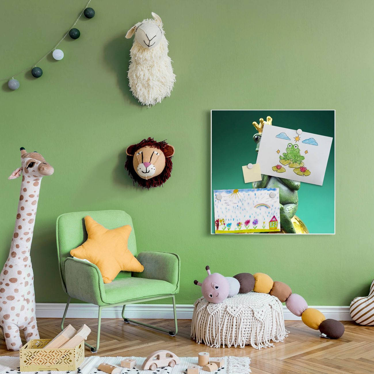 Die banjado Design Magnettafel mit Motiv Motiv Froschkönig bringt Ordnung in Ihr Zettelchaos. Fotos, Termine, Notizen oder Rezepte lassen Sich hier stilvoll mit Magneten ordnen, Sie behalten alles im Blick. An der Pinnwand halten alle handelsüblichen Magnete. Mit dieser Pinnwand aus Metall haben Sie auch ohne Notizen und Magnete ein schönes Dekoelement. Das Quadratische Format bietet Ihnen ausreichend Platz um alle wichtigen Informationen im Blick zu behalten.