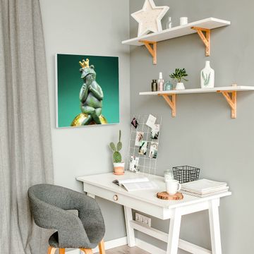 Motiv Froschkönig Nr. 10191 Größe: 50x50x2cm BxHxT Gewicht: ca. 1,5 kg Material: Stahl weiß lackiert, Premiumfolie mit Schutzlaminat Magnete: für Dekomagnete geeignet beschreibbar: Nein Format: Quadratisch Zubehör: 4 Magnete, Schrauben und Dübel