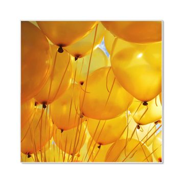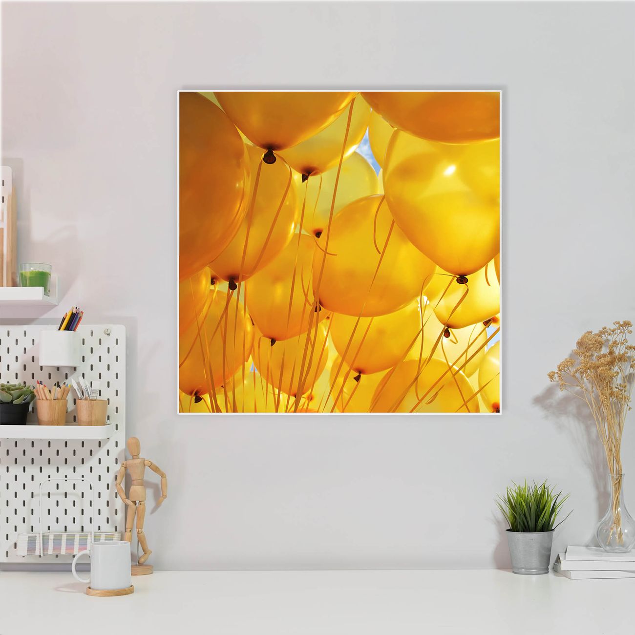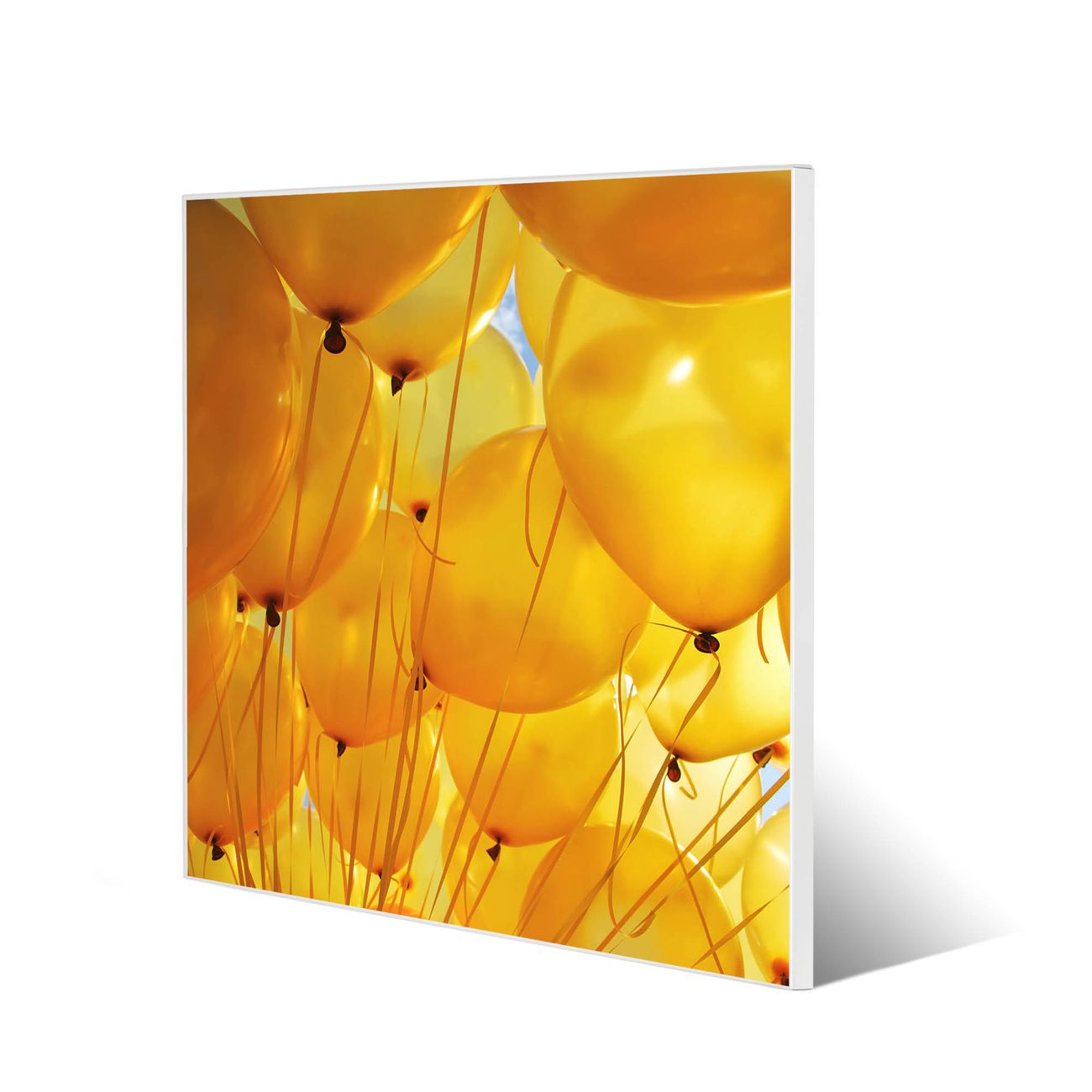 Motiv Gelbe Luftballons Nr. 12460 Größe: 50x50x2cm BxHxT Gewicht: ca. 1,5 kg Material: Stahl weiß lackiert, Premiumfolie mit Schutzlaminat Magnete: für Dekomagnete geeignet beschreibbar: Nein Format: Quadratisch Zubehör: 4 Magnete, Schrauben und Dübel