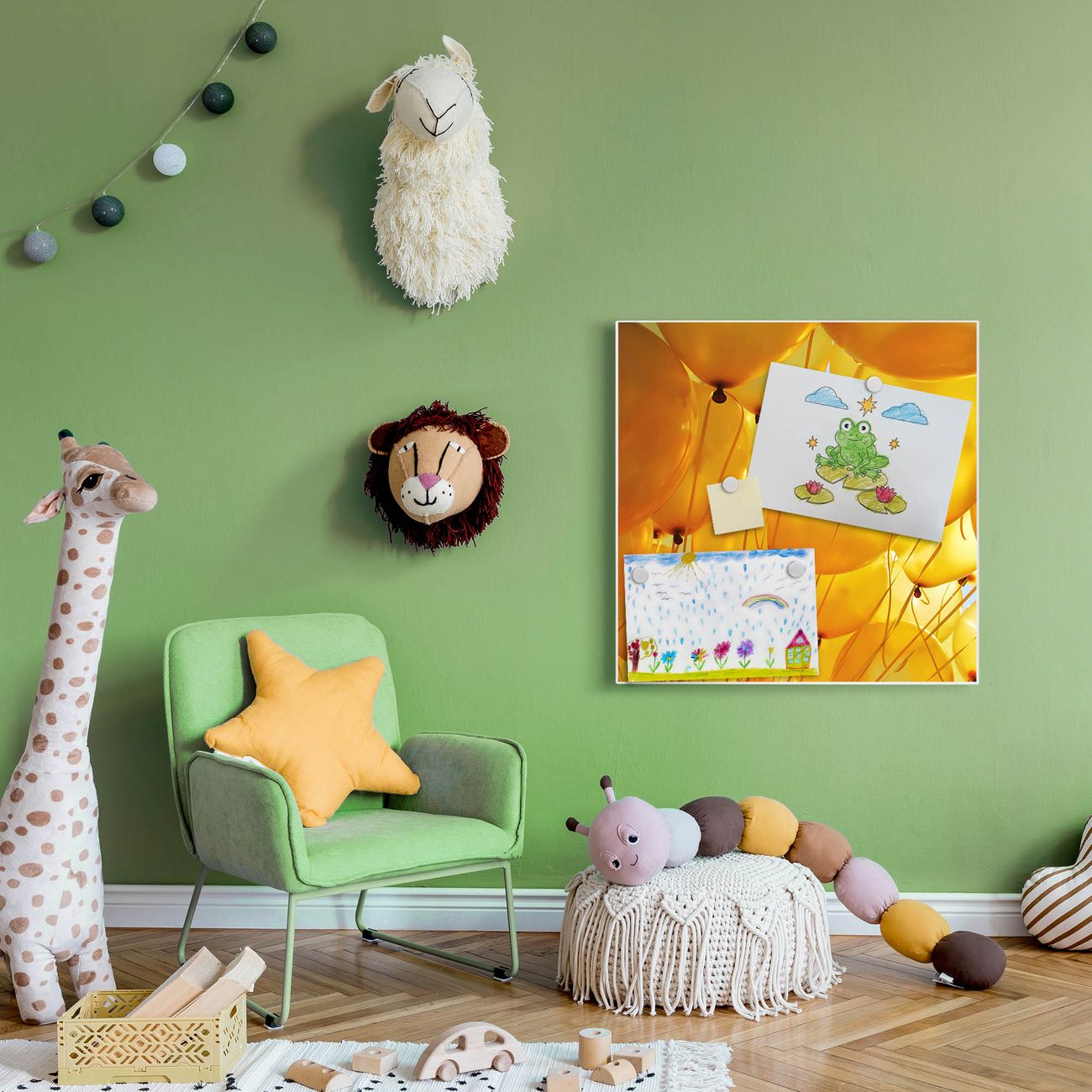 Die banjado Design Magnettafel mit Motiv Motiv Gelbe Luftballons bringt Ordnung in Ihr Zettelchaos. Fotos, Termine, Notizen oder Rezepte lassen Sich hier stilvoll mit Magneten ordnen, Sie behalten alles im Blick. An der Pinnwand halten alle handelsüblichen Magnete. Mit dieser Pinnwand aus Metall haben Sie auch ohne Notizen und Magnete ein schönes Dekoelement. Das Quadratische Format bietet Ihnen ausreichend Platz um alle wichtigen Informationen im Blick zu behalten.