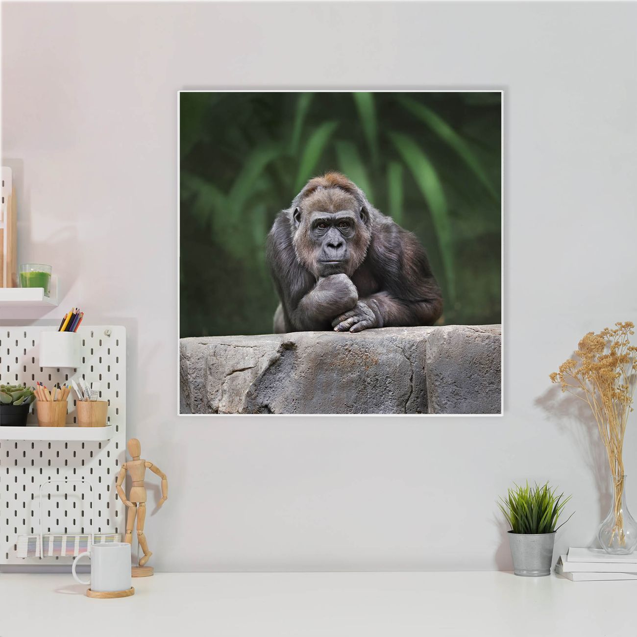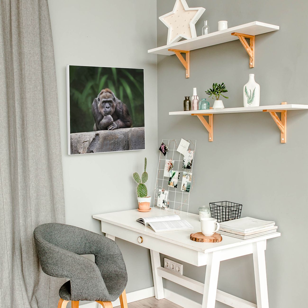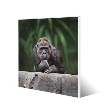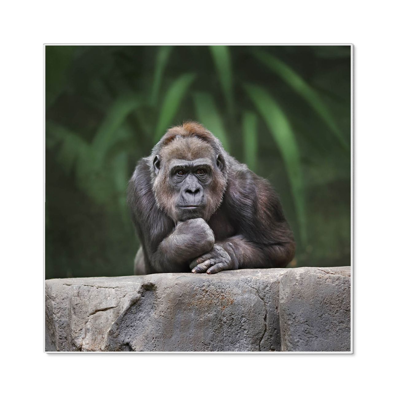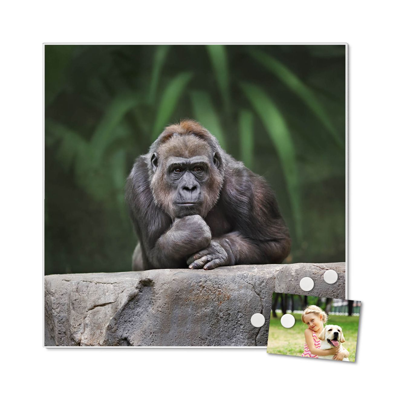 Motiv Gorilla Nr. 10509 Größe: 50x50x2cm BxHxT Gewicht: ca. 1,5 kg Material: Stahl weiß lackiert, Premiumfolie mit Schutzlaminat Magnete: für Dekomagnete geeignet beschreibbar: Nein Format: Quadratisch Zubehör: 4 Magnete, Schrauben und Dübel