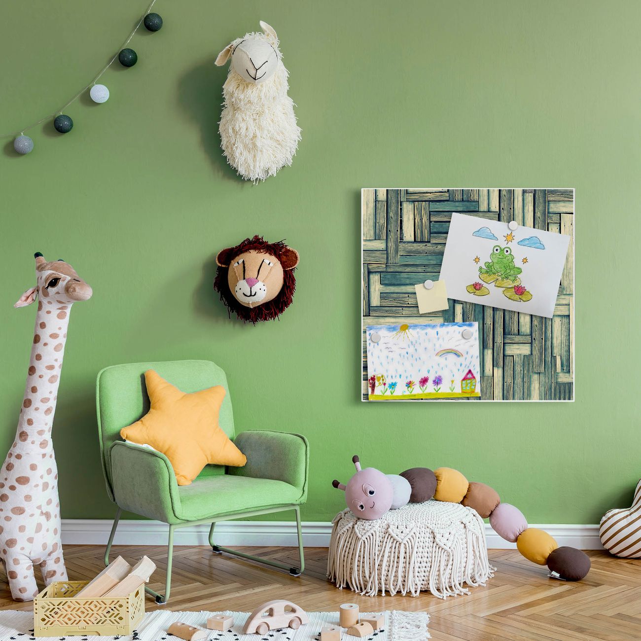 Die banjado Design Magnettafel mit Motiv Motiv Grüne Planken bringt Ordnung in Ihr Zettelchaos. Fotos, Termine, Notizen oder Rezepte lassen Sich hier stilvoll mit Magneten ordnen, Sie behalten alles im Blick. An der Pinnwand halten alle handelsüblichen Magnete. Mit dieser Pinnwand aus Metall haben Sie auch ohne Notizen und Magnete ein schönes Dekoelement. Das Quadratische Format bietet Ihnen ausreichend Platz um alle wichtigen Informationen im Blick zu behalten.