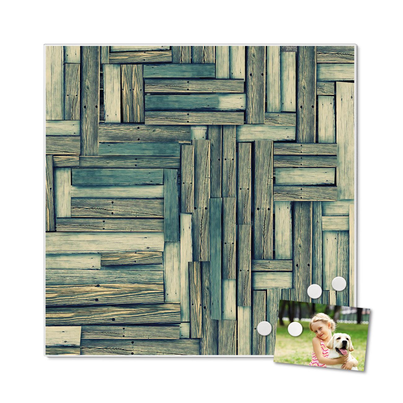 Motiv Grüne Planken Nr. 11929 Größe: 50x50x2cm BxHxT Gewicht: ca. 1,5 kg Material: Stahl weiß lackiert, Premiumfolie mit Schutzlaminat Magnete: für Dekomagnete geeignet beschreibbar: Nein Format: Quadratisch Zubehör: 4 Magnete, Schrauben und Dübel