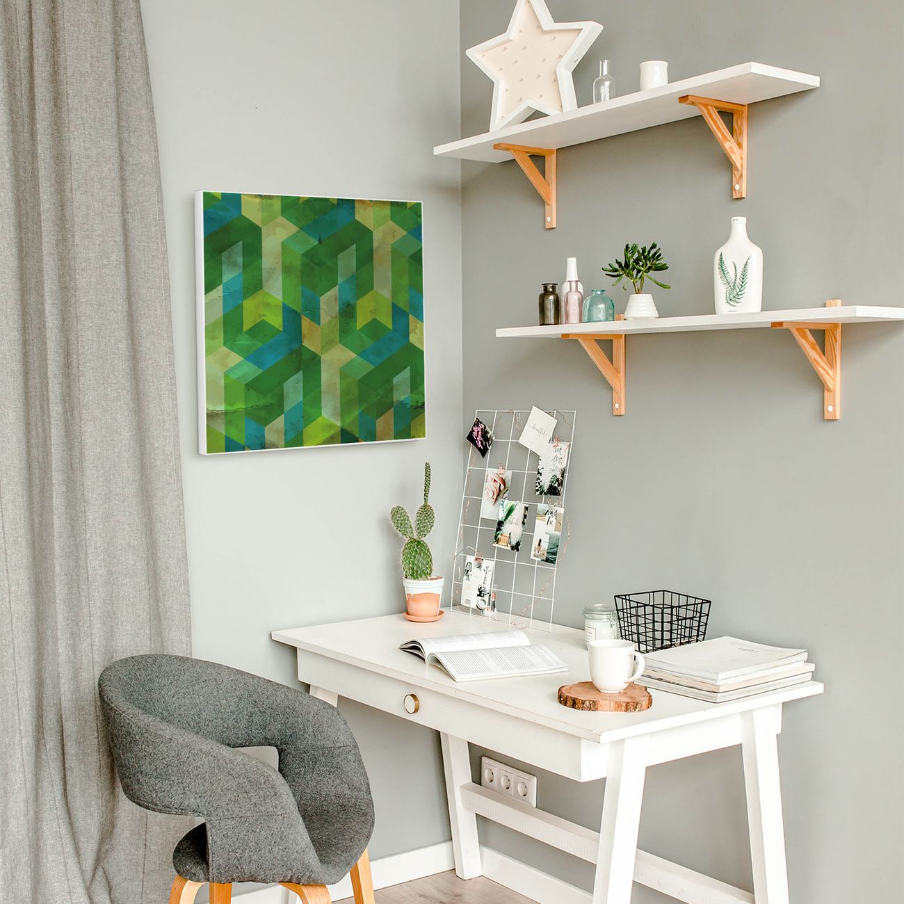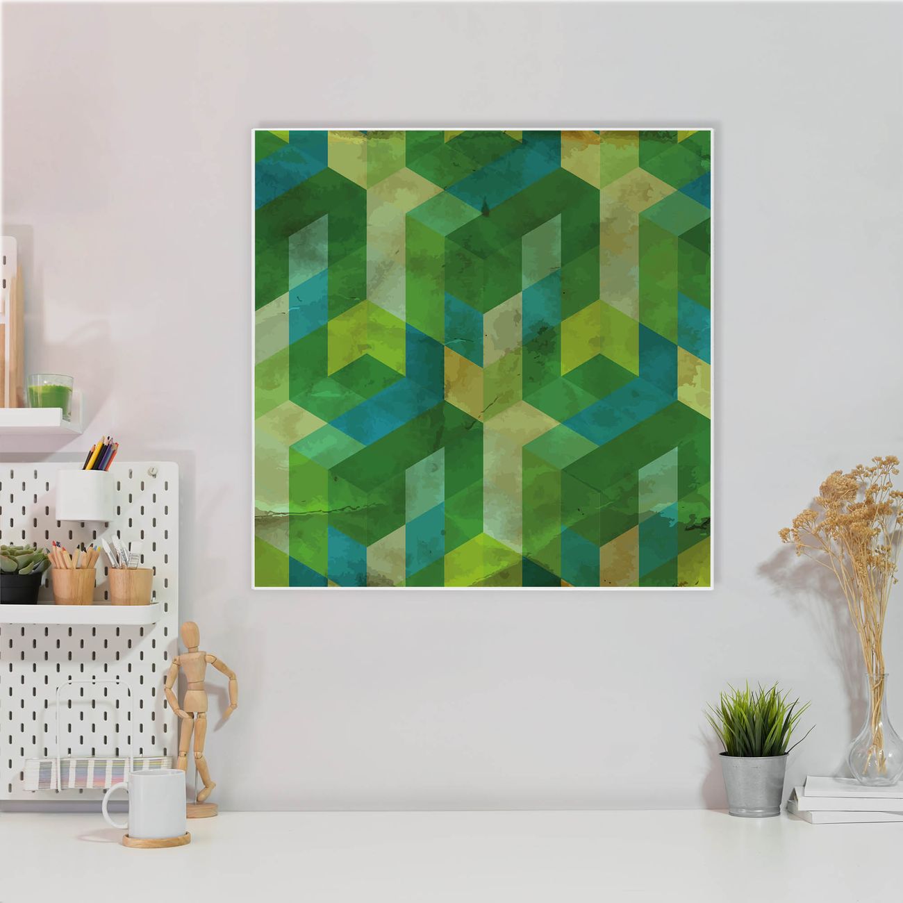 Motiv Grüne Würfel Nr. 10829 Größe: 50x50x2cm BxHxT Gewicht: ca. 1,5 kg Material: Stahl weiß lackiert, Premiumfolie mit Schutzlaminat Magnete: für Dekomagnete geeignet beschreibbar: Nein Format: Quadratisch Zubehör: 4 Magnete, Schrauben und Dübel