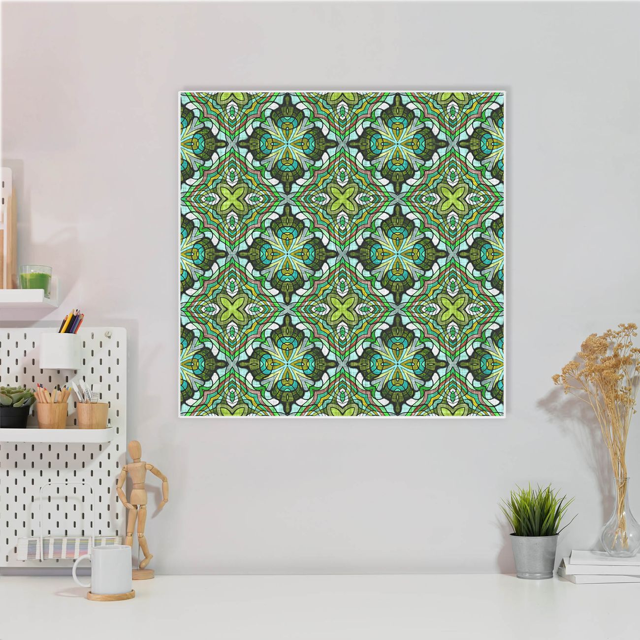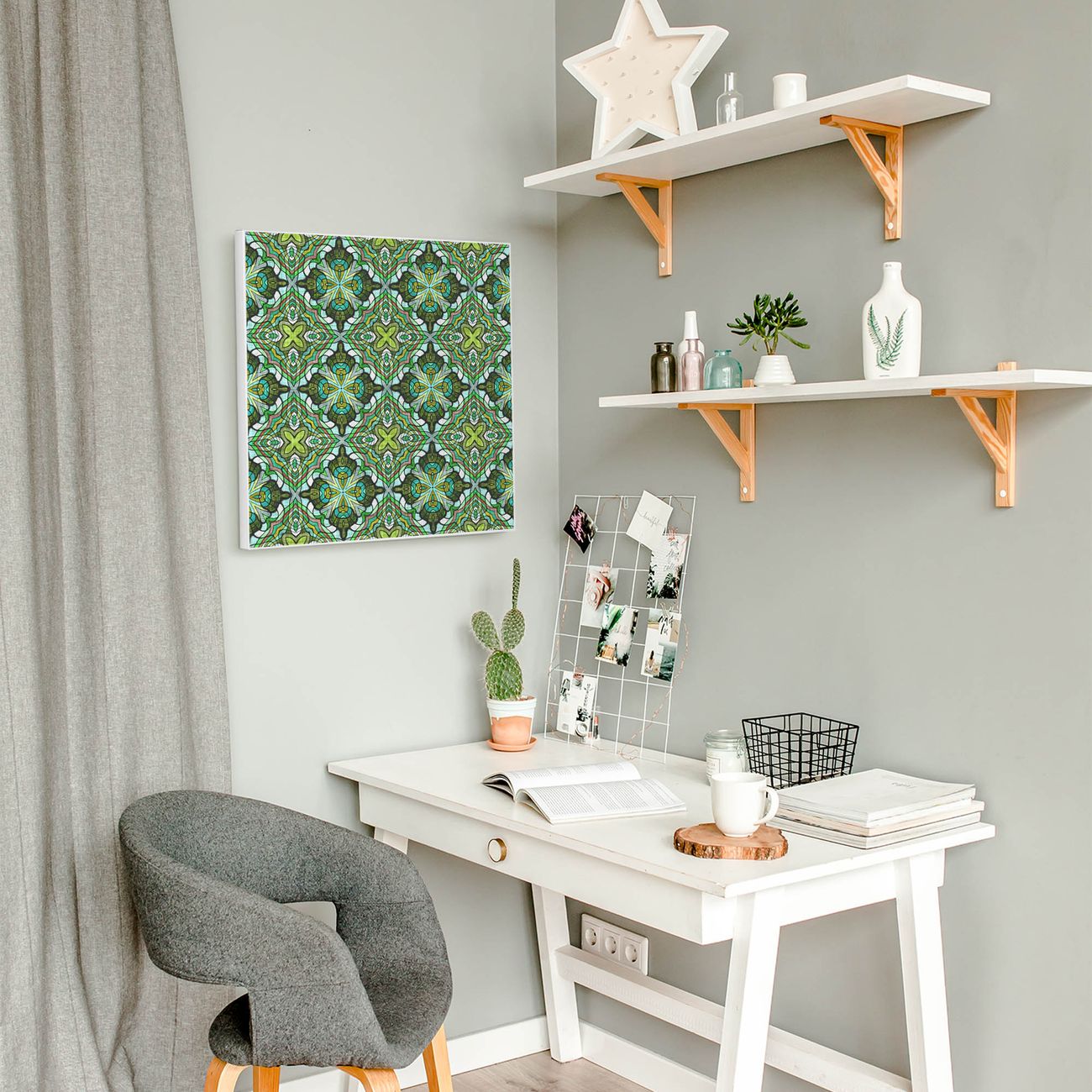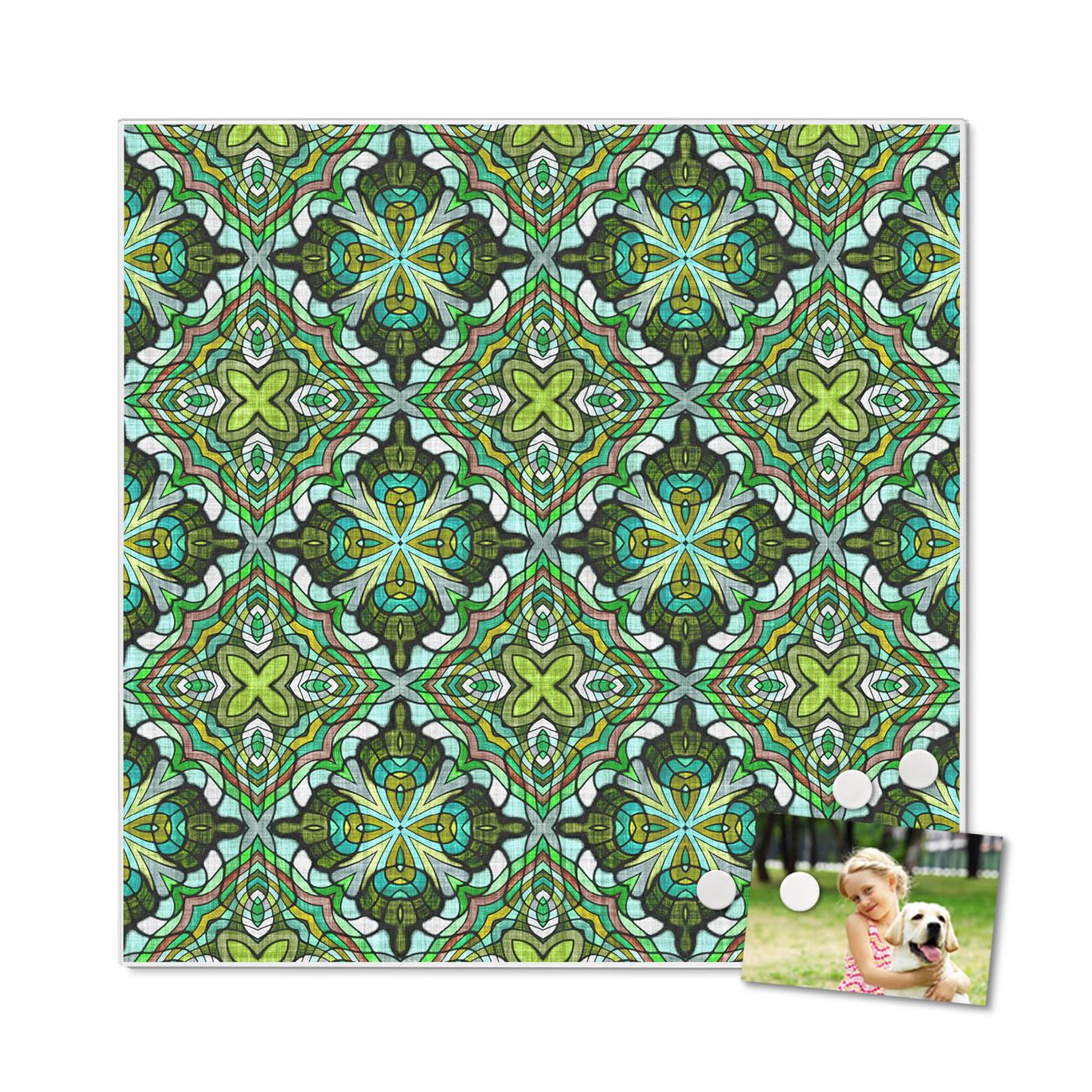 Motiv Grünes Muster Nr. 10796 Größe: 50x50x2cm BxHxT Gewicht: ca. 1,5 kg Material: Stahl weiß lackiert, Premiumfolie mit Schutzlaminat Magnete: für Dekomagnete geeignet beschreibbar: Nein Format: Quadratisch Zubehör: 4 Magnete, Schrauben und Dübel