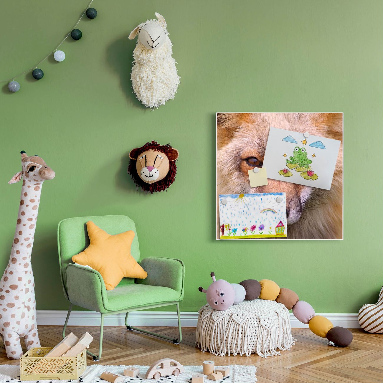 Die banjado Design Magnettafel mit Motiv Motiv Henryk bringt Ordnung in Ihr Zettelchaos. Fotos, Termine, Notizen oder Rezepte lassen Sich hier stilvoll mit Magneten ordnen, Sie behalten alles im Blick. An der Pinnwand halten alle handelsüblichen Magnete. Mit dieser Pinnwand aus Metall haben Sie auch ohne Notizen und Magnete ein schönes Dekoelement. Das Quadratische Format bietet Ihnen ausreichend Platz um alle wichtigen Informationen im Blick zu behalten.