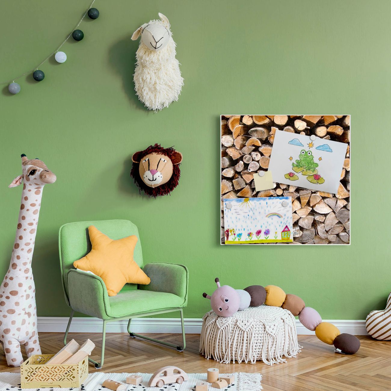 Stahl Magnettafel 50x50cm Holzstapel