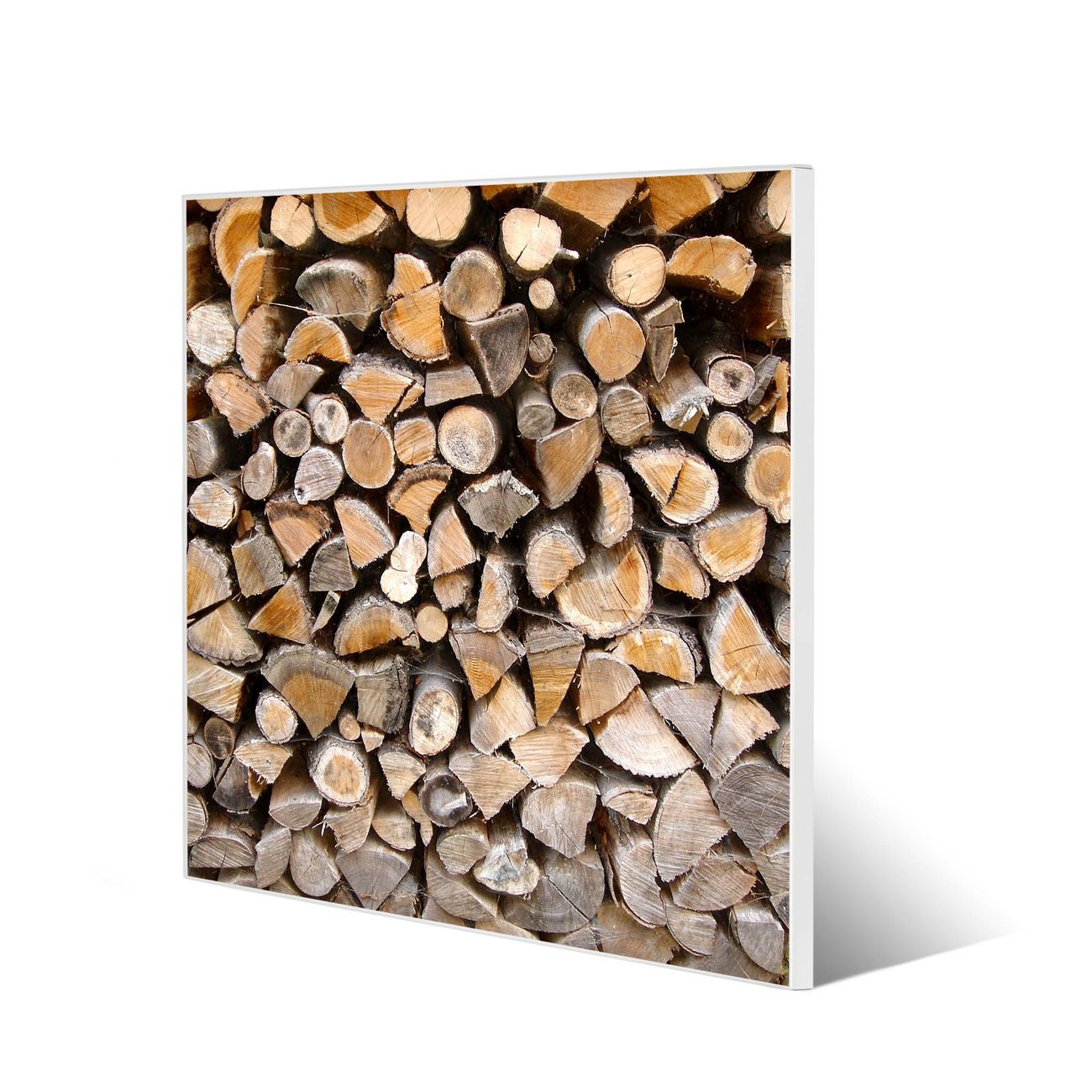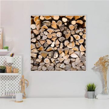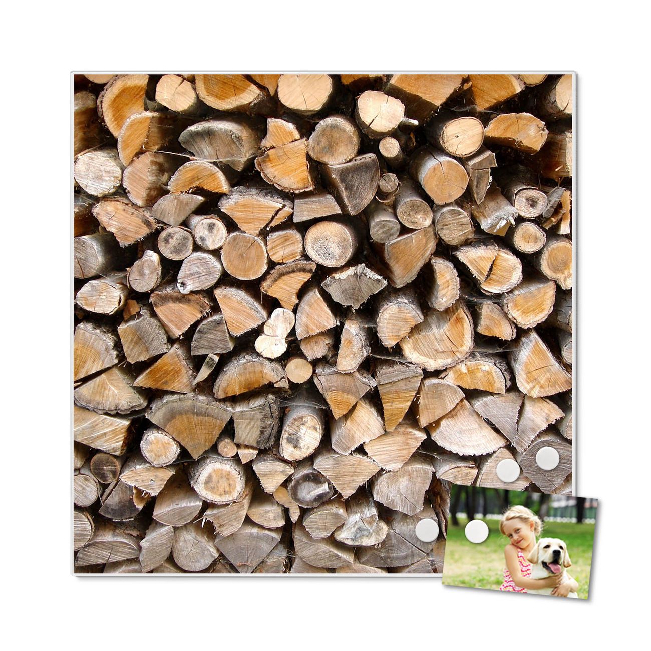 Motiv Holzstapel Nr. 10141 Größe: 50x50x2cm BxHxT Gewicht: ca. 1,5 kg Material: Stahl weiß lackiert, Premiumfolie mit Schutzlaminat Magnete: für Dekomagnete geeignet beschreibbar: Nein Format: Quadratisch Zubehör: 4 Magnete, Schrauben und Dübel